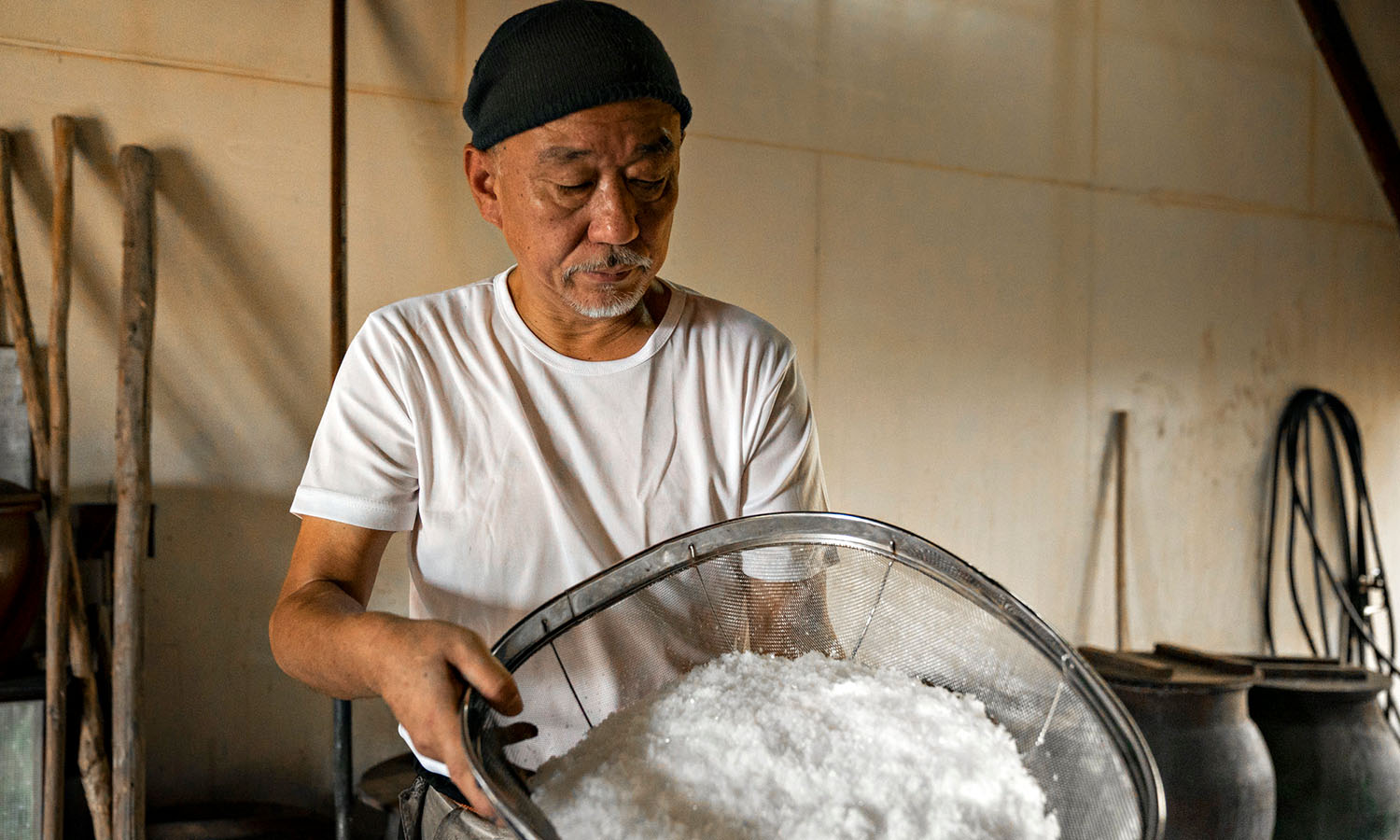 A short walk from Tsubaki Chaya is the Pearl Goto Produce Centre. Alongside seasonal soft-serve ice-cream and handmade goodies like camellia oil, it also sells sea salt that is made next door. The salt, which is highly prized by exclusive restaurants, is expertly processed using traditional methods that allow the water from the Goto-Nada Sea to retain most of its minerals. The result is a sweeter-tasting salt that is shipped to exclusive restaurants as far away as Fukuoka.