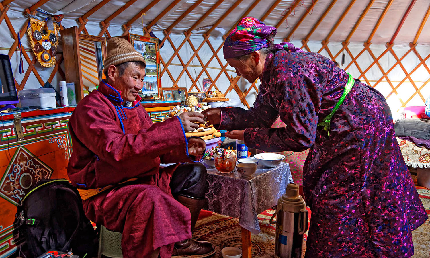 There’s a downright ceremony to drinking vodka in Mongolia, and we love to see it. If you’re travelling the land of a thousand gers and find yourself offered a glass (or bowl) of vodka, the custom-appropriate thing to do is dip a finger in and then flick it once towards the sky, once towards the earth and a little dab on your forehead. Why? You’re honouring the local spirits, duh. If it’s too early in the day for vodka, just put your finger to your forehead, say thank you and hand it back. No harm, no foul, no vodka.