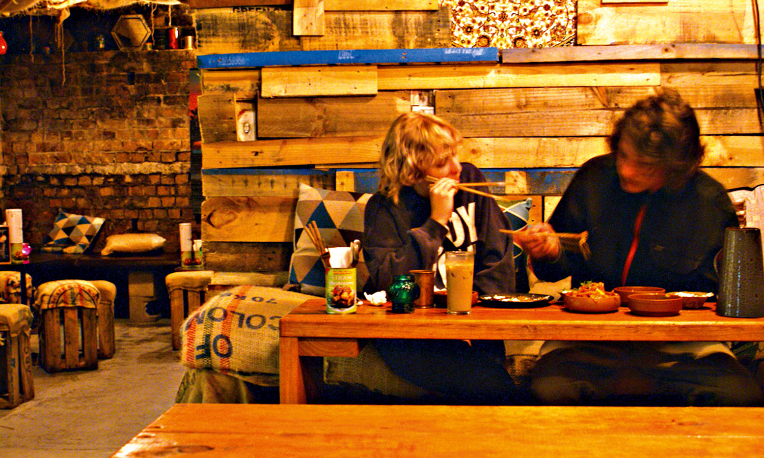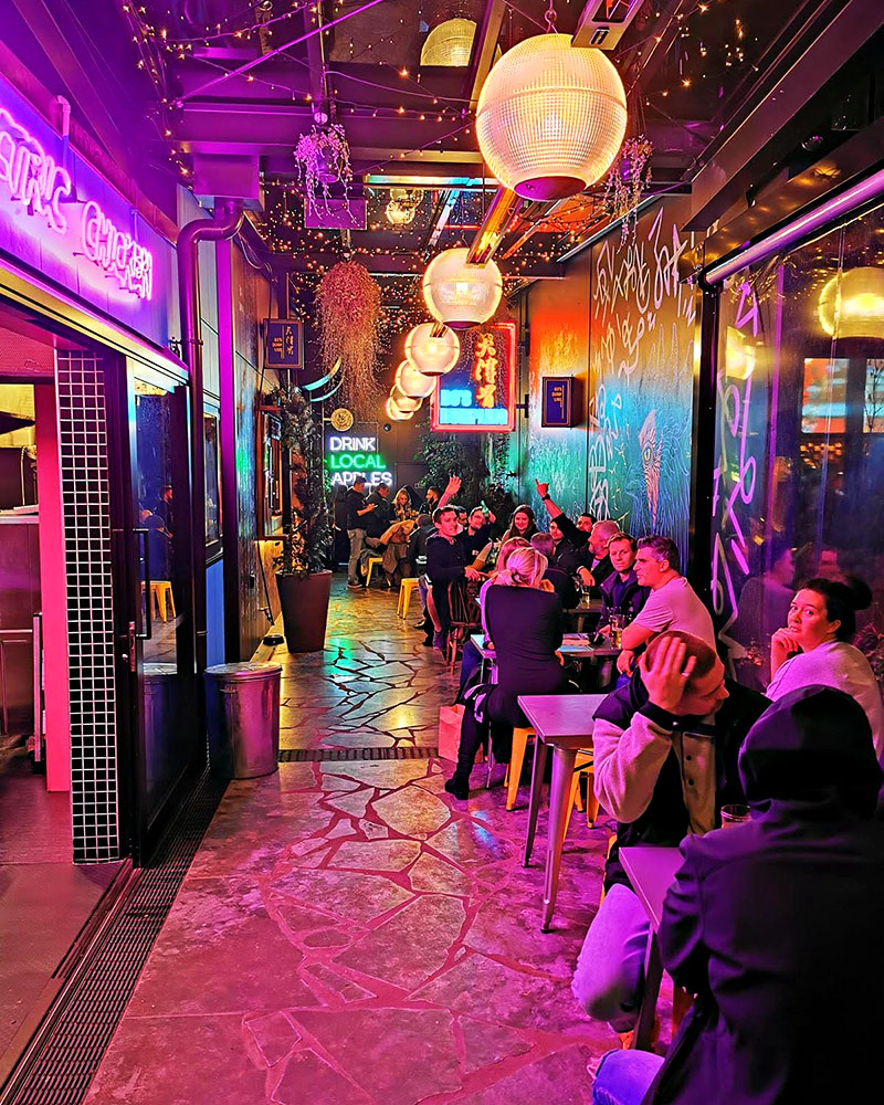 Which is fine, of course. Perhaps they were down at the waterfront watching an outdoor movie. Films are shown regularly throughout the summer, projected on the towering concrete silos that are located in the old industrial shipping district. But for now your mate needs to line their stomach. Luckily, Electric Chicken is just around the corner.