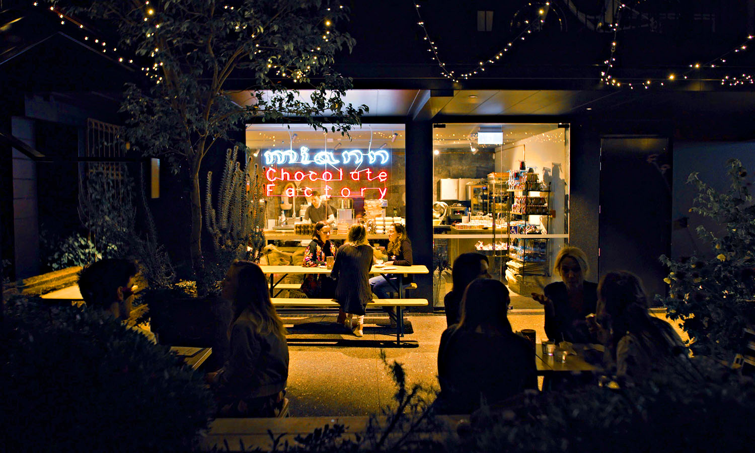 There you’ll find a tucked-away spot frequented by locals. It’s also home to a tiny working chocolate factory, Miann, which just happens to have a dessert cafe squeezed between sacks of cacao beans and centrifuges that spin rich, heady wafts of chocolate scent into the night.