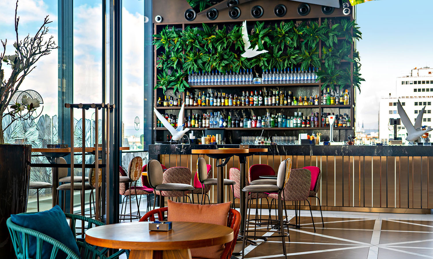 By now the sun is getting ready to set, and there is no better place to put the day to rest than at the Ginkgo Sky Bar atop the VP Plaza España Design hotel. This ultra-fabulous lounge, restaurant and music venue has panoramic views of the Royal Palace, Almudena Cathedral and other landmarks you simply can’t get anywhere else. The only competition faced by the vista is the bar itself – from its faceted mirrored ceiling to the tropical vertical garden surrounding the bottles, there’s plenty to catch the eye. The signature cocktail blends gin, Fino de Jerez, pink pepper tonic water, shiso leaves and lemon grass. You might find yourself wanting to stay for the live music and DJs, but come back later if you must.