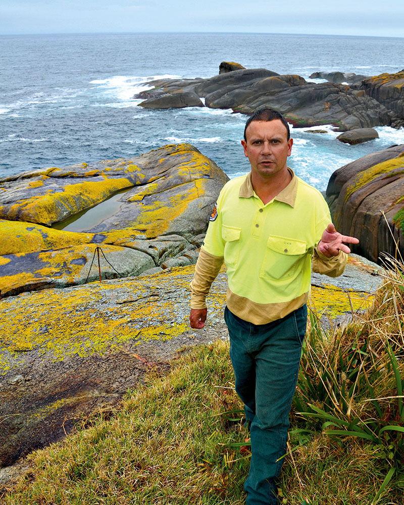 We see the silhouette of the granite lighthouse that was manned by hardy lighthouse keepers until automation in 1986. Through the mist above the water there’s a man in a yellow jacket waiting on the jetty. Our guide on the island is Dave Blakeney, a local Koori who works as a caretaker for the National Parks and Wildlife Service. Dave helps us, and our crate of supplies, onshore. “If the weather’s bad we could be stuck here for a week,” he says matter-of-factly.