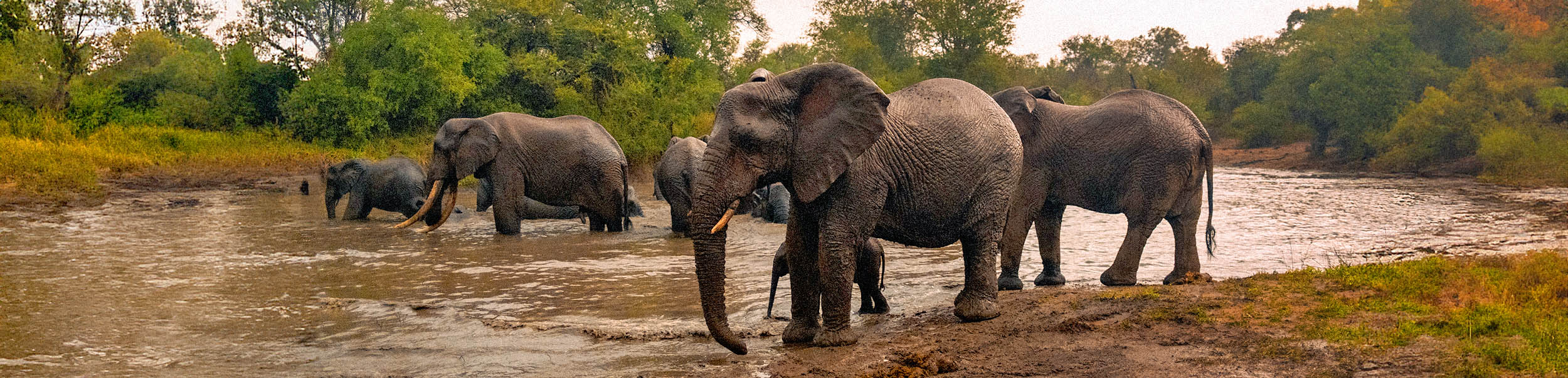 From the seat of our safari truck, we’re watching a 30-strong herd take their twilight bath. Huge males with tusks the size of bull bars lumber past as females spray water on the backs of clumsy calves. Two women (and one man) in my truck are crying with—what I hope is—joy.