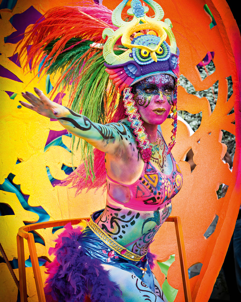 It’s like nothing I’ve ever seen before. The floats are covered in colourful and intricate details, and showers of confetti and streamers rain down as tiers of performers dance atop the four-storey-high structures. Cumbia rhythms blast from massive speakers and mechanical heads roar and bob about to the beat alongside the larger-than-life costumed characters who dance along the streets lined with an enthusiastic crowd.