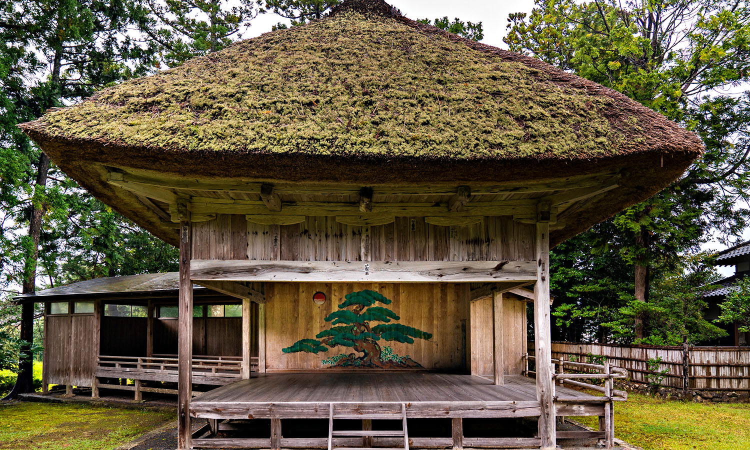 Ozen Shrine is one of those remaining 30 and, as you walk along the overgrown path leading up to it, passing through the torii gate with its peeling, dulled paintwork, you get the sense you are entering a place forgotten by time. Being able to see a shrine complex ageing gracefully is a rare and beautiful sight, and the centrepiece is the stunning Noh stage. Crafted from unvarnished wood and protected from the rain by a thick thatched roof coated in a layer of moss, it possesses an almost ascetic nature. Noh performances are still held here in June, with a wood fire lighting the stage. It must be an incredible sight to behold.
