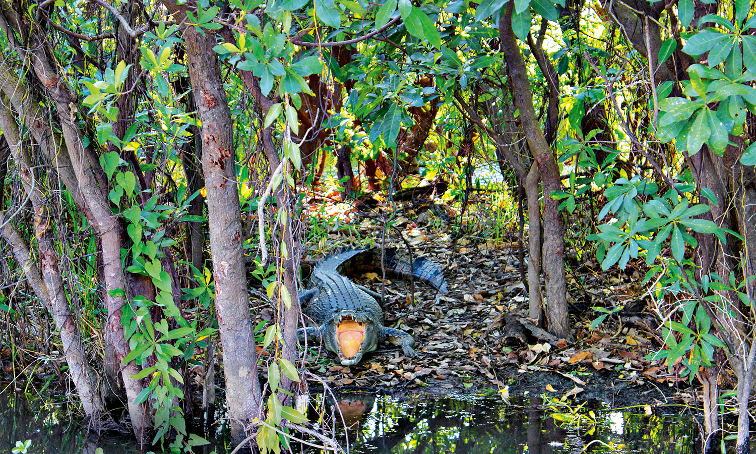 We hike 3km to the monsoon forest pools of Gubara. The area is known as Buladjang, or ‘sickness country’, and has rock art depicting people with swollen joints, presumably from the uranium in the earth. Uranium remains a topical issue in Kakadu due to the ever-present threat that mining companies will expand their operations. Last year, however, traditional owner Jeffrey Lee won a battle to incorporate a 1200ha parcel of uranium-rich land – earmarked for mining – into park borders.