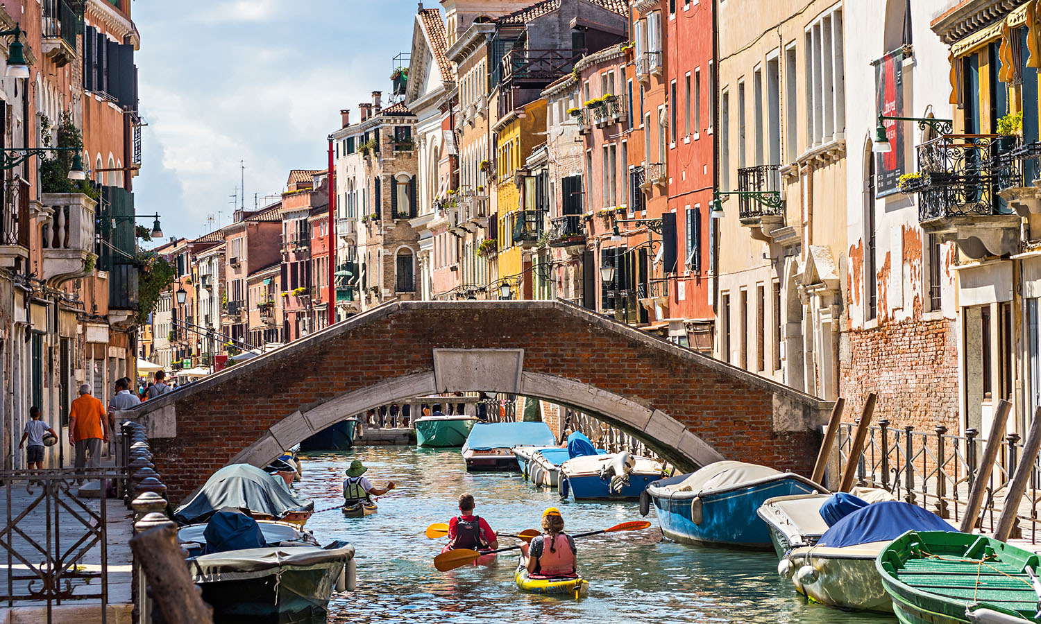 But road rage is scarce. More likely a cheery ciao and smile. Only one gondolier gets stuck in, saying we simply aren’t allowed. And maybe we aren’t. My advice? Kayak Venice before the fun police move in.