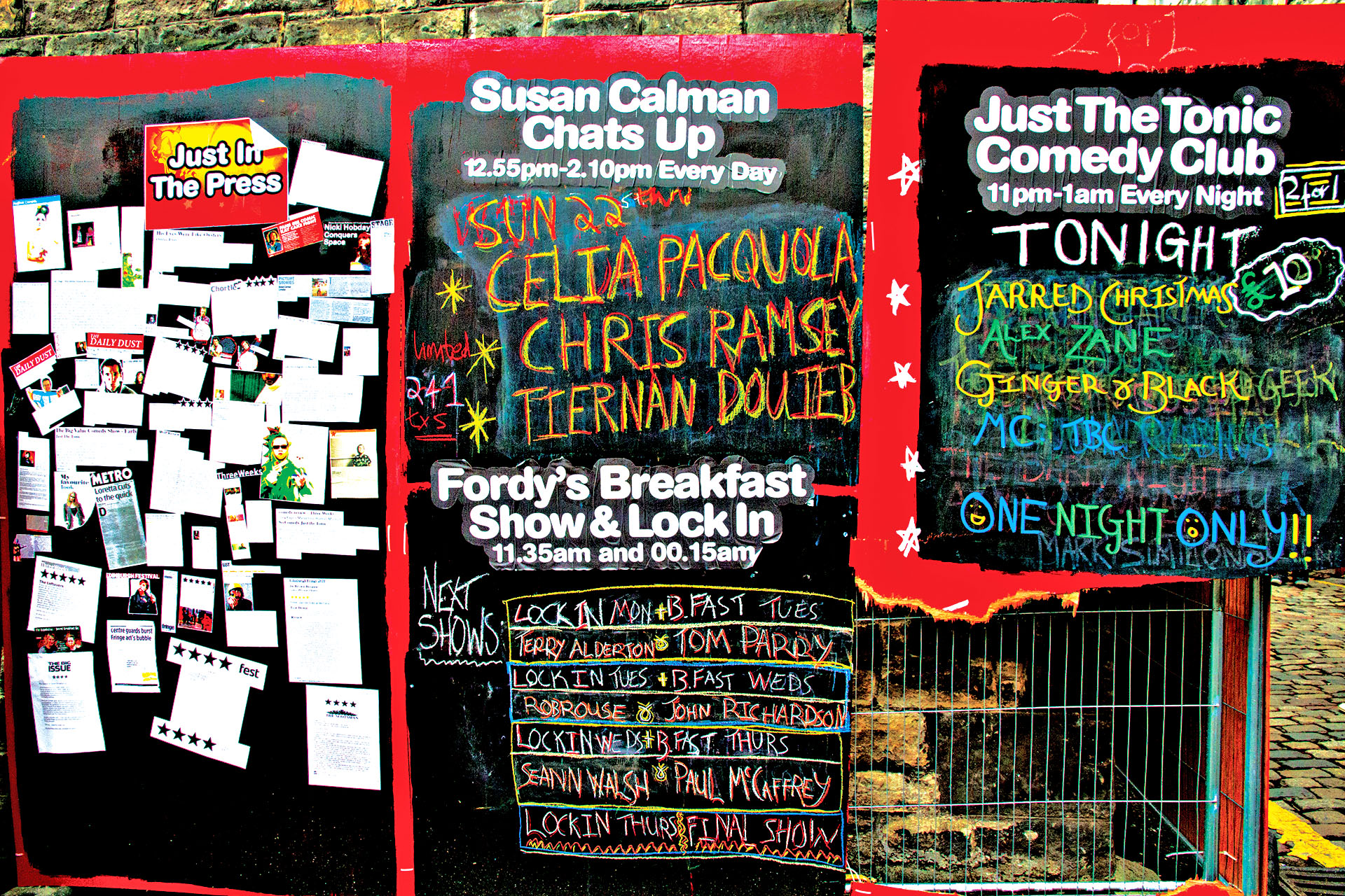 The epicentre of the Fringe is Edinburgh’s Royal Mile: a cobblestone street winding down from the imposing Edinburgh Castle. With only limited space on the street, buildings were constructed storey upon storey, which produced some of the first high-rises in Europe. It is said that the sewage issues this created gave rise to the term ‘shit-faced’, as those who didn’t get home by the 10pm curfew often found themselves covered in excrement as the occupants emptied their sewage out the windows and onto the street and wandering drunks below. For four weeks every August the Fringe buzzes night and day. You’ll find street performances, performers spruiking their shows and loads of wide-eyed travellers. Old Scottish pubs and tourist shops fight for space lining the Mile. It’s easy to get lost as you wander off amongst the many small closes (alleyways) that crisscross it. When the Fringe is on each one will inevitably lead to a show of some sort.