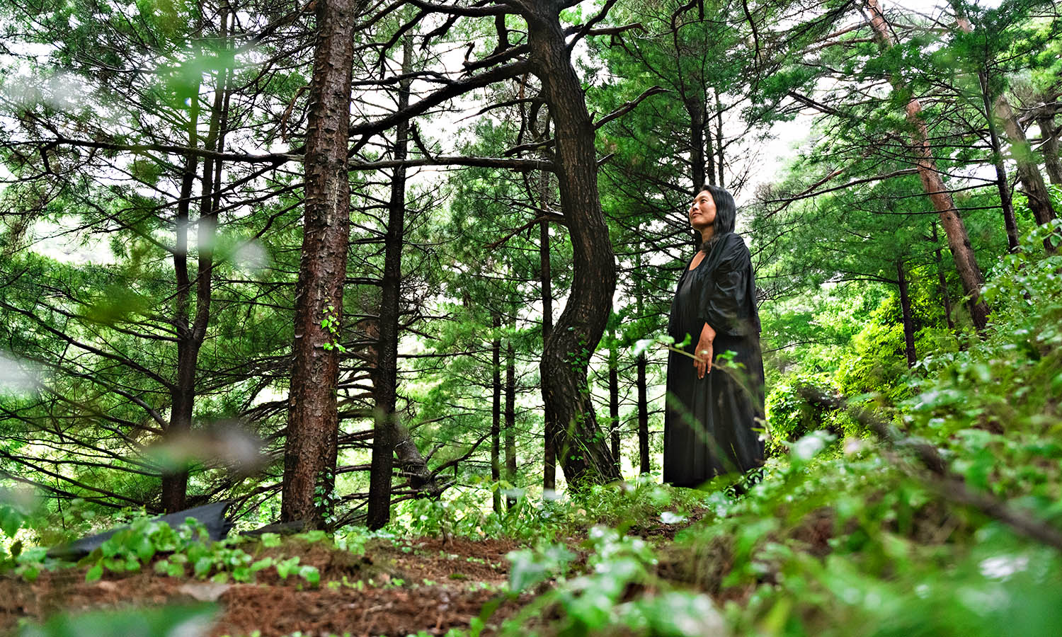 I don’t quite know what they mean by that until I meet Soyoun. Or should I say, until I follow Soyoun barefoot into a Gangneung pine forest in the rain.