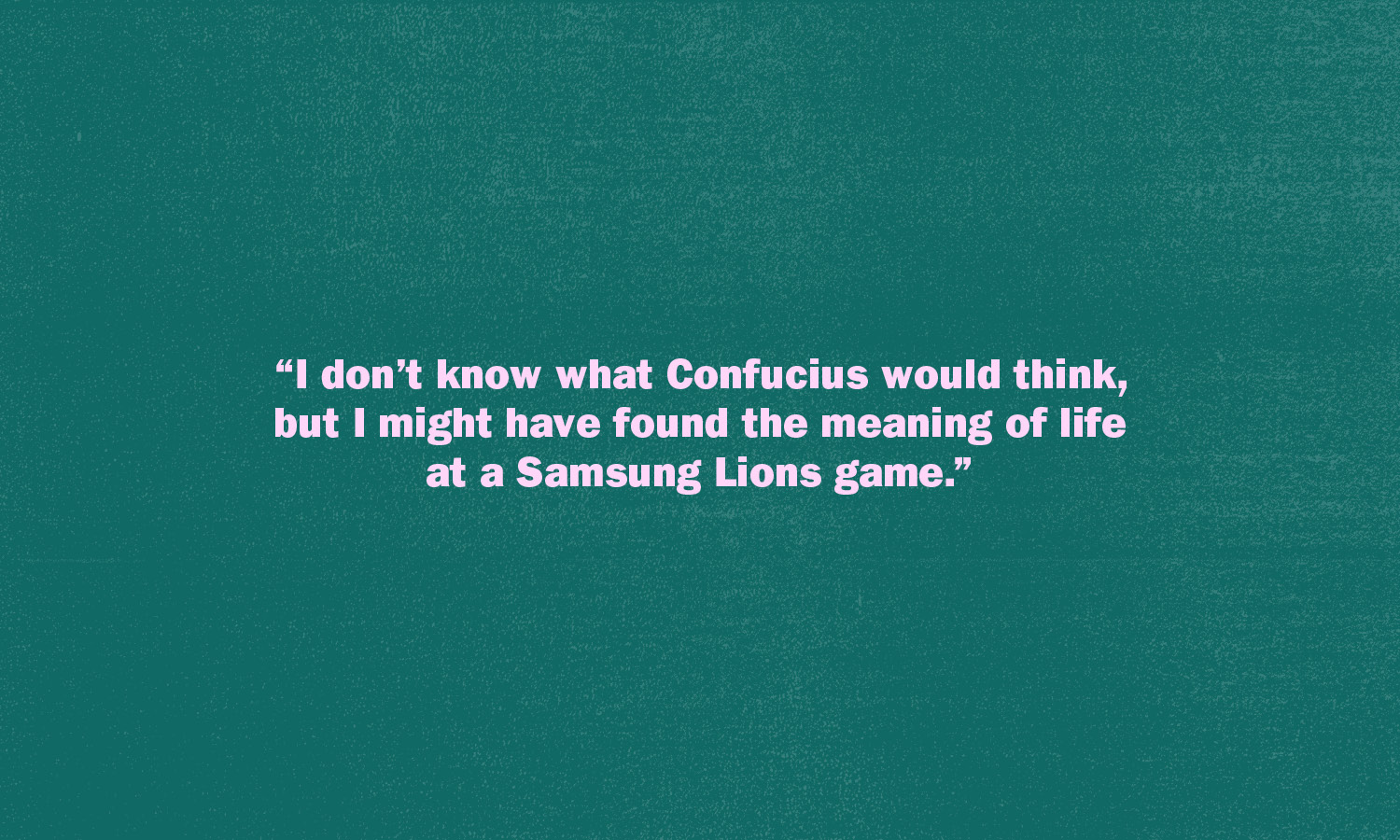 Our InsideAsia local guide, Alex, tells me his favourite saying is “you come into this world empty handed and you leave it empty handed”. I understand that this is meant to be a commentary on materialism, however I can’t help but think of Alex later that day as I’m navigating stairs at the baseball stadium, my hands full of Cass beers and chicken skewers. I don’t know what Confucius would think, but I reckon I might have found the meaning of life at a Samsung Lions game.
