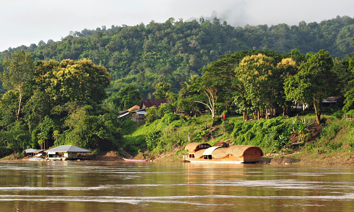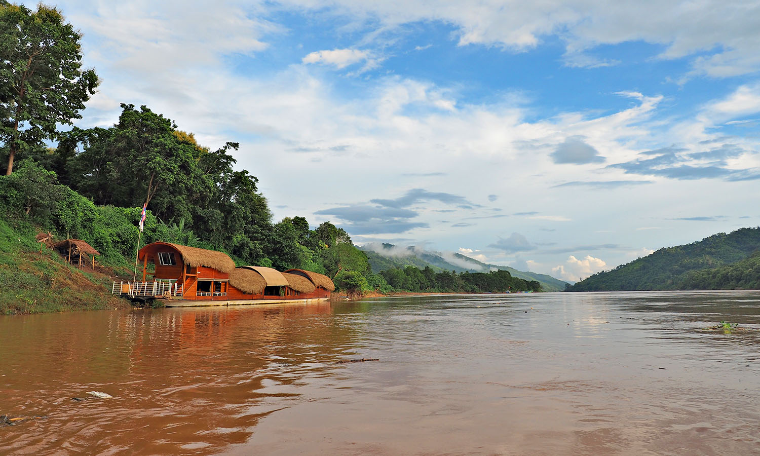 Leaving Chiang Rai behind, we carve through the thick morning mist. Jungle-clad hills rise up on either side, and every now and then, a lone fisherman stares at us, presumably wondering which minor royal or washed-up pop star is floating past.