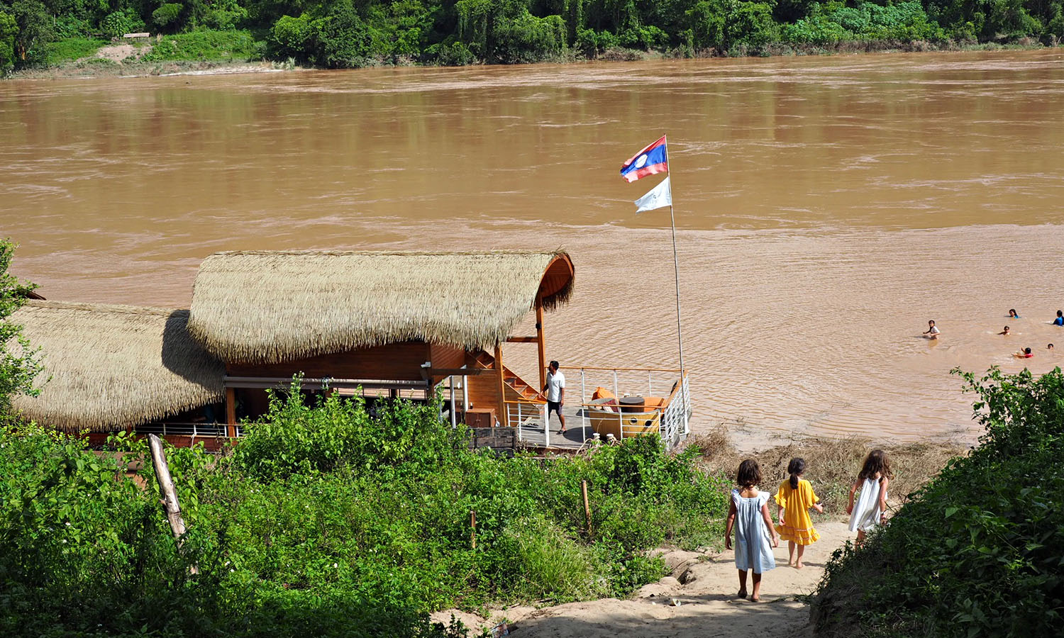 I spread out across the daybed, sipping G&Ts and reading a book I have absolutely no intention of finishing. This is a slow cruise, and the Mekong, a muddy, muscular beast of a river, doesn’t so much flow as swagger downstream. It suits me perfectly. River boats chug slowly along, the ones heading upstream fighting a battle against the fast-moving Mekong. A “fast boat”, which is basically a surfboard with a massive engine and 8 people strapped to it, zips past us, and I’m reminded of my last trip on this mighty river. Backpacking, sleeping in hammocks and clinging to the edges of a “fast boat”, wishing I’d taken a Laotian “nerve settler” in Pakbeng before climbing on. I toast myself and the Gypsy with another Beer Lao!