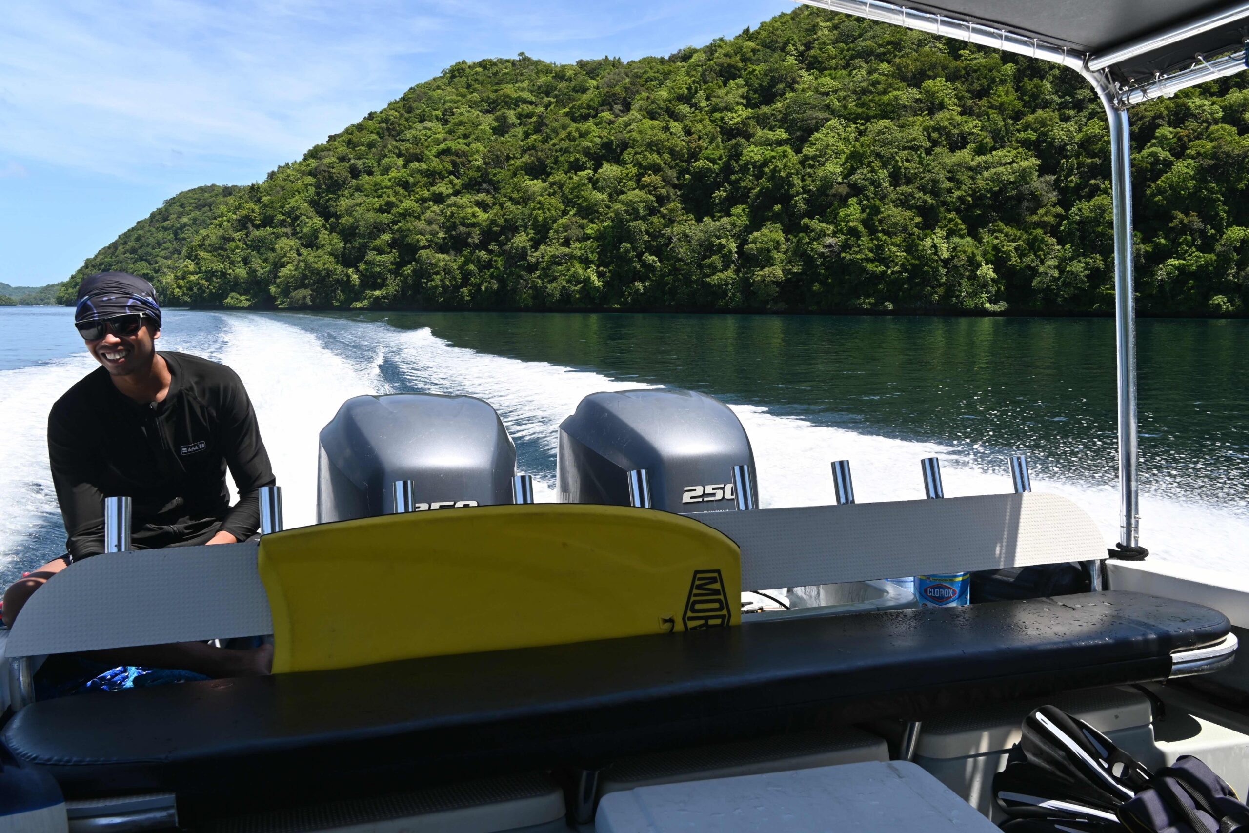 After a delicious lunch, I head back to the boat to get ready to switch swimming companions. Instead of jellyfish we’ll be sharing the water with the reef sharks I can already see circling the boat.