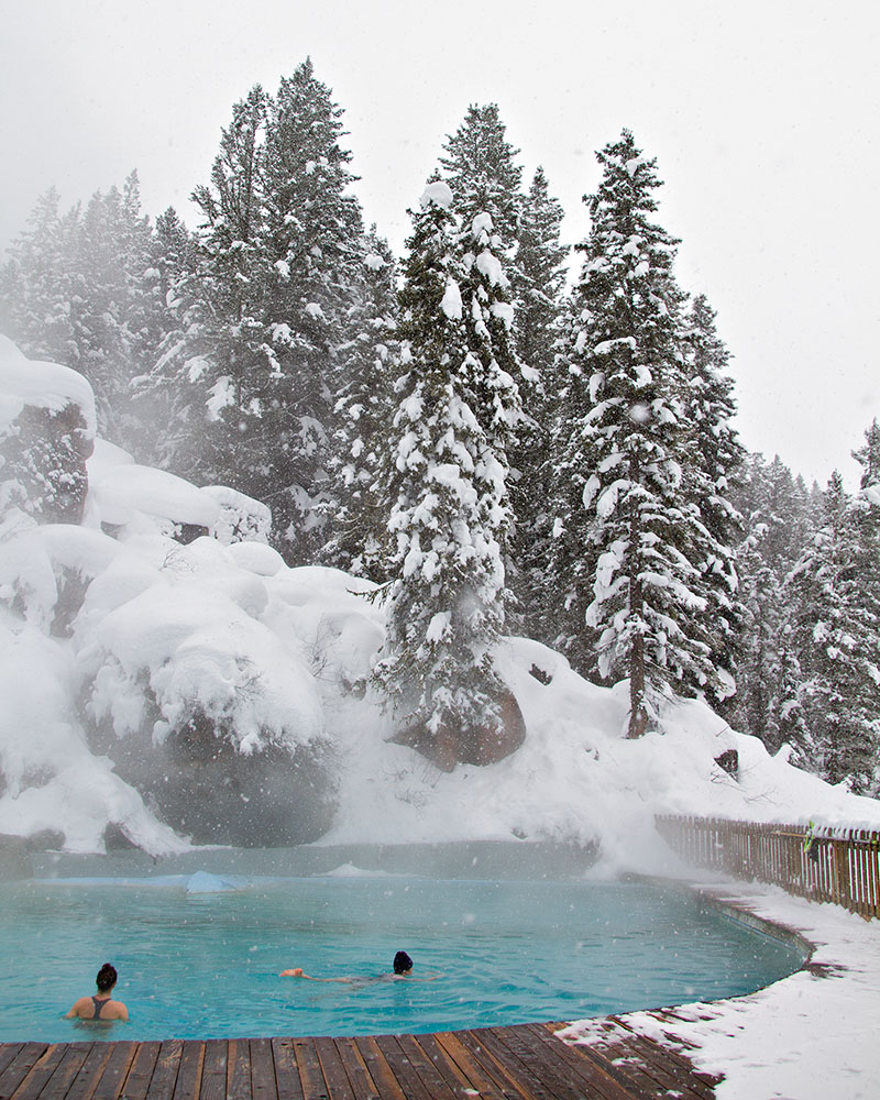I’m cold. Really cold. And I’m standing in my underwear in a wooden shack deep in Wyoming’s Bridger-Teton National Forest. This is not the scene of some erotic horror movie though. I’m about to plunge into the piping-hot waters of the swimming pool at Granite Hot Springs. It is fed by a 40ºC natural spring streaming down the snow-covered hillside. The heat has melted the surrounding snow and the 10-second shuffle across icy stairs and a slippery, humility-stealing boardwalk seems to take an eternity. By the time I reach the pool’s edge I cannot feel my extremities. Thankfully, it doesn’t take long for the hot springs to toast me and, as I float like a cooked lobster, I think about the best part of this scenario – the adventure to get here.