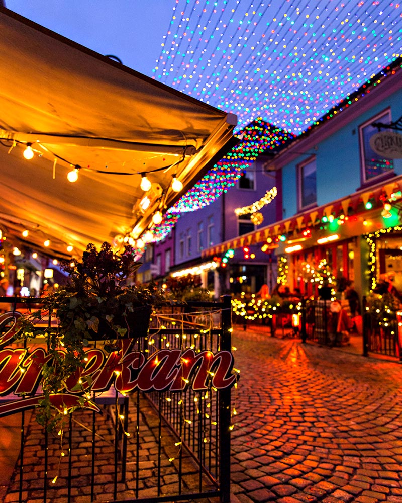 On a quest for the best view within the city’s bounds, I climb up the small but steep hillside to Gamle Stavanger, a protected heritage precinct perched above the main harbour. It’s the epitome of a fairy tale village: warm and charming, lined with quaint, uniformly white wooden cottages that hark back to the 18th and 19th centuries. If Gamle Stavanger is the grand old dame of town, then the rainbow row of shopfronts at nearby Fargegaten is indeed its rebellious little sister.