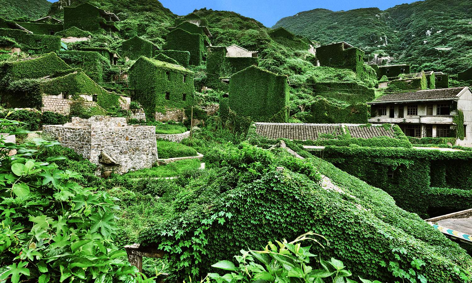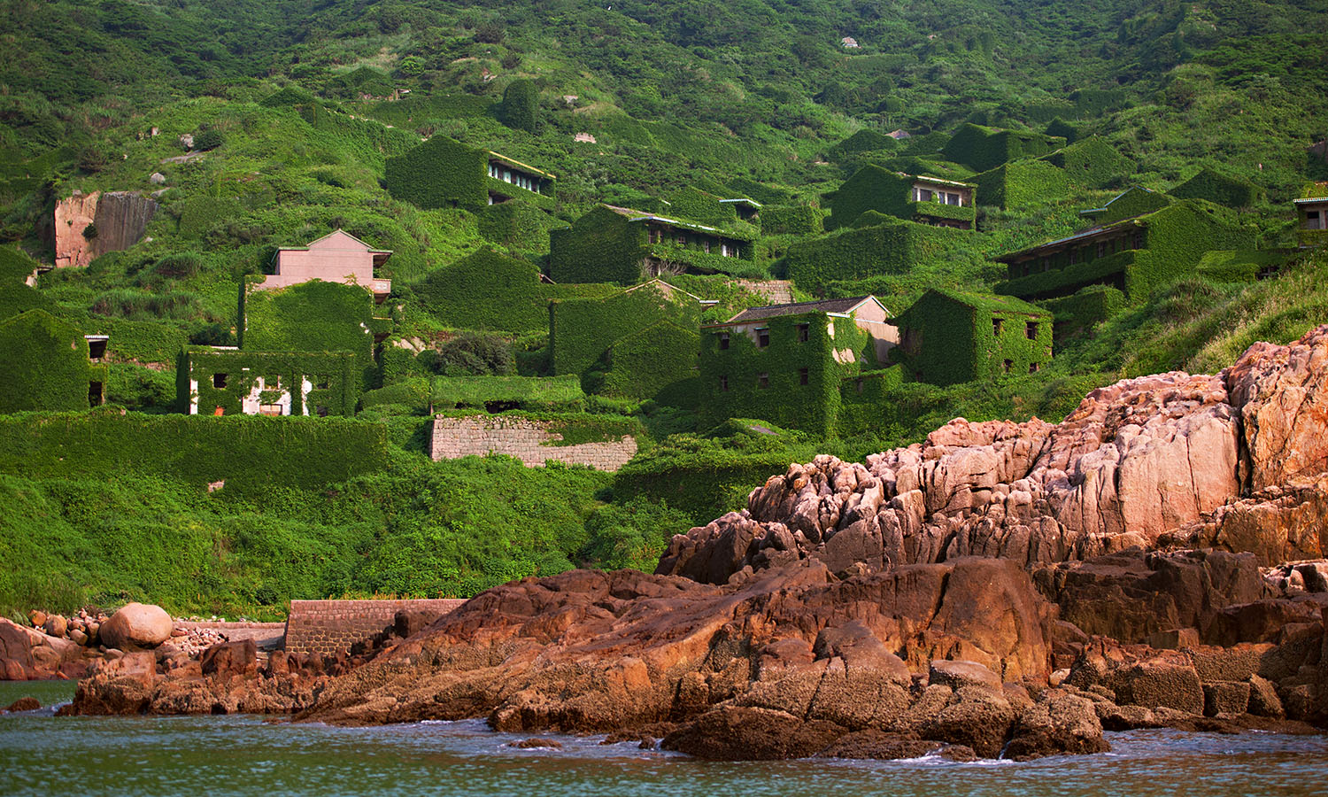 A small fishing village on China’s Shengshan Island, the town was abandoned by residents partly due to the difficulty of getting there, an extremely narrow and steep path being the only way in or out.