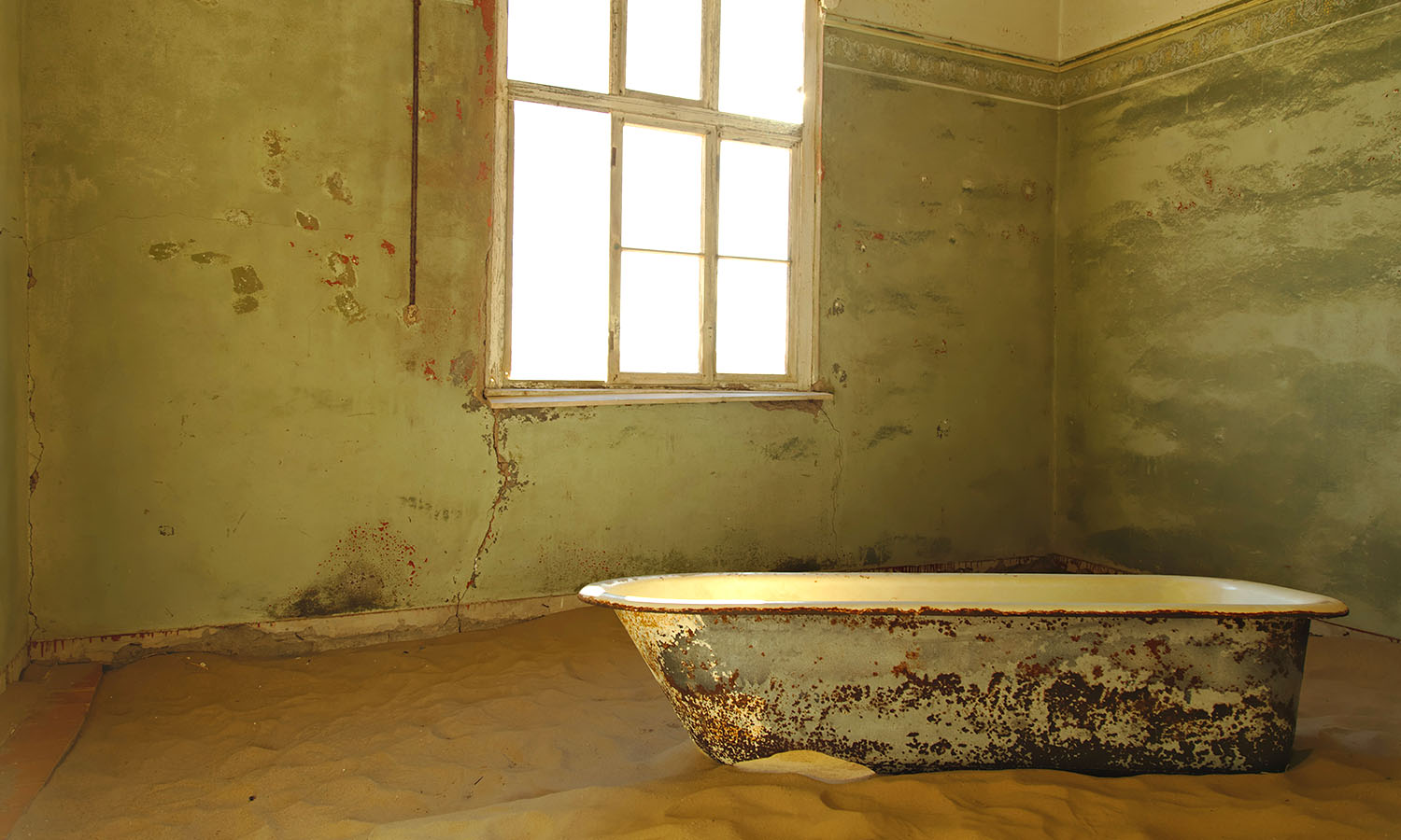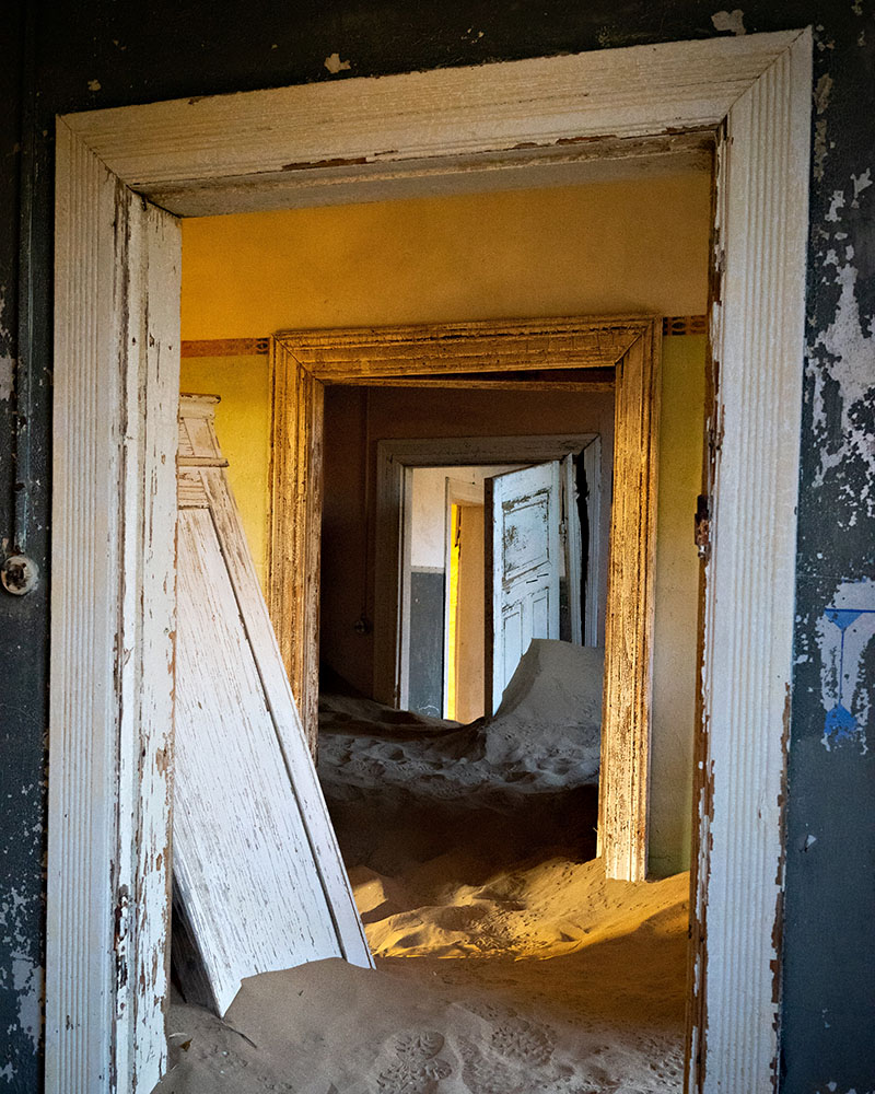 It has been sinking under the weight of the Namib Desert ever since. Travellers who reach Kolmanskop walk through abandoned houses knee-deep in sand and filling further, like a life-sized hourglass. The entire town will one day be buried in sand.