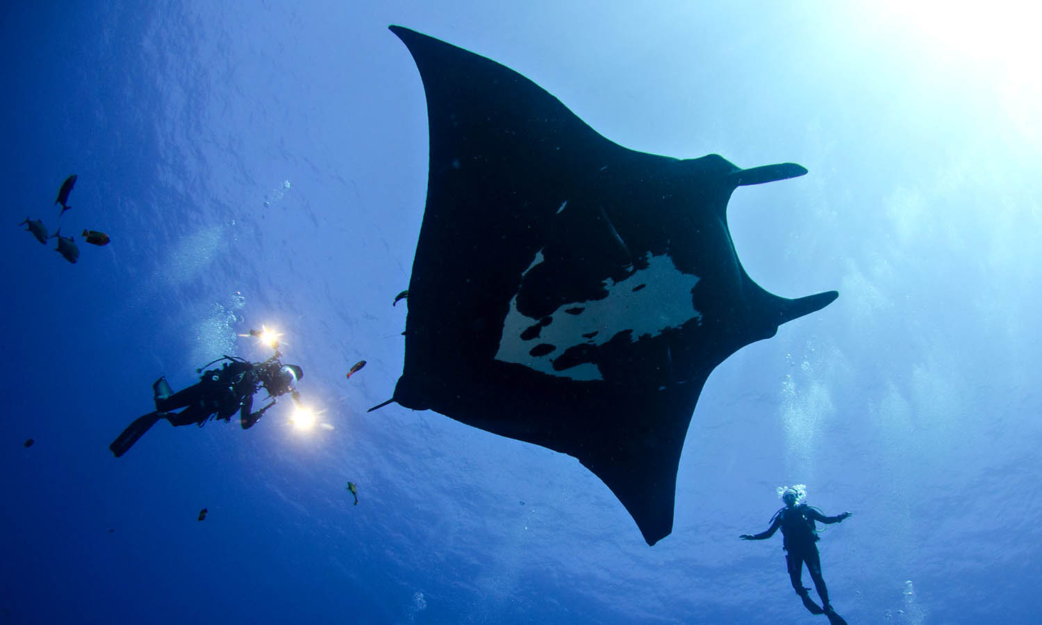 Scuba dive Isla Socorro, keeping an eye out for giant manta rays.