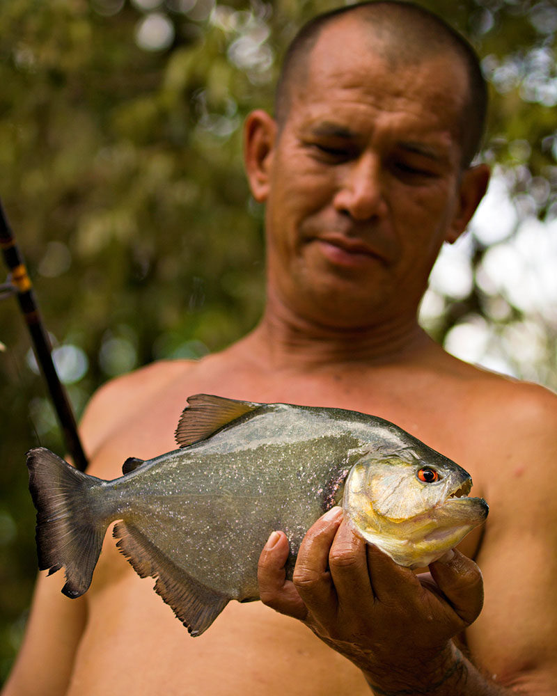 Jerry, a zealous fisherman, suggests a walk to the river to cool off. As I glide through the water, he pulls a big silver fish from it. I ask what type of fish he’s catching, to which he emphatically replies, “Piranha.”