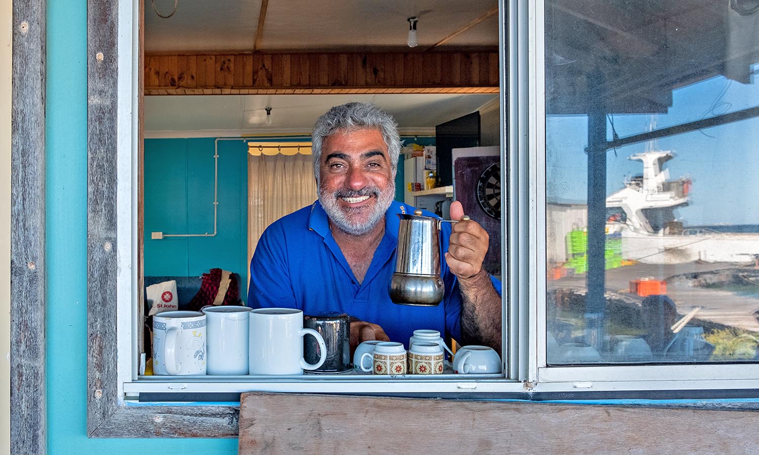 “My father came out in ‘52 from Sicily,” says Peter, as he brews real Italian coffee for our group. Peter explains that previous rules restricted the fishing season to several months, prompting fishing families to relocate to the islands fulltime to maximise catches during this time. Since 2009 the fishery has been managed on an annual basis and there are now fewer people here at once. But Peter and Nino prefer to be here anyway. “Why would you want to go into town?” Peter says. “Too many people!”