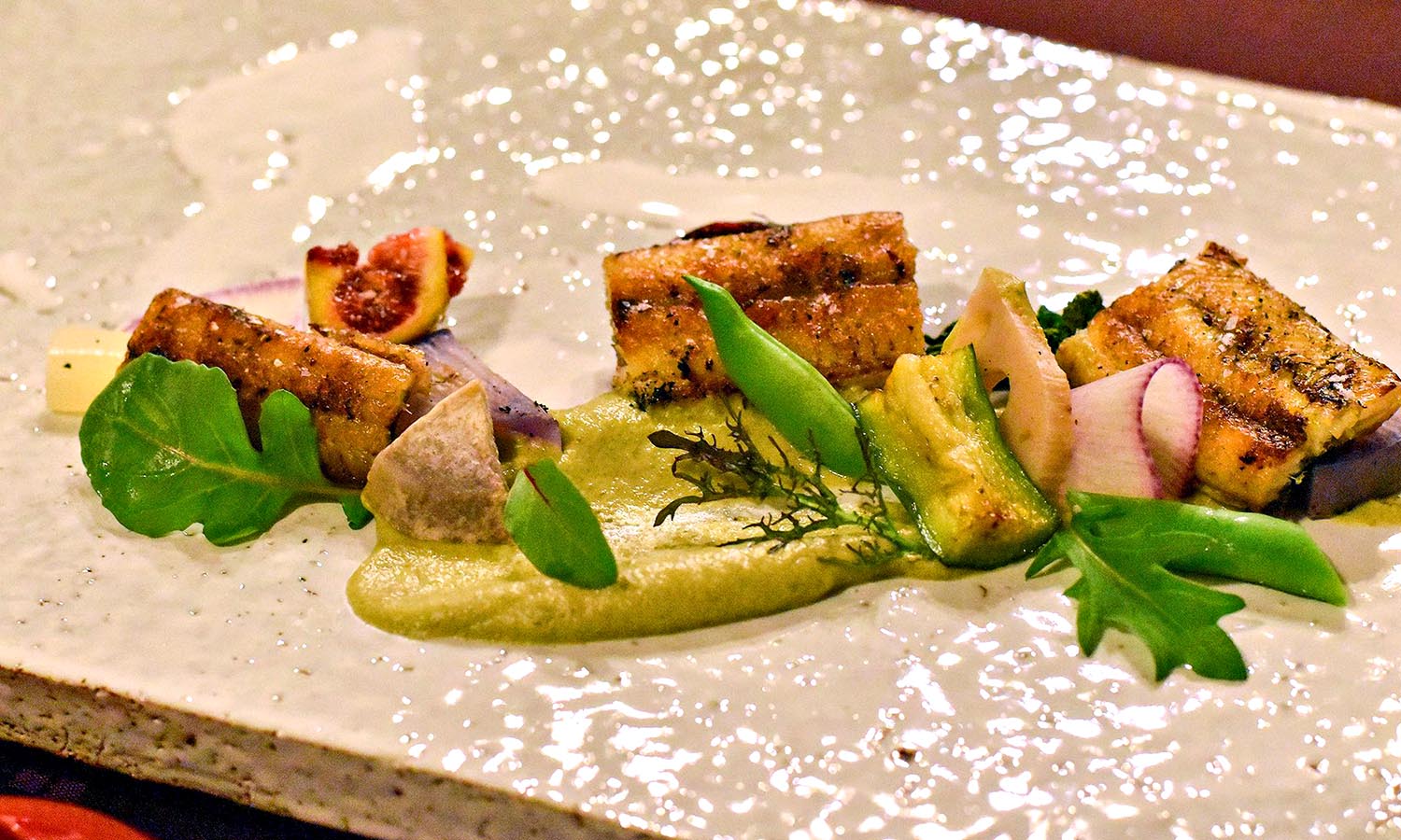 I look at the tar-coloured black skin of the thumb-sized fish in front of me. It sits meticulously plated, its plump little belly diagonally sliced, head on its side, eyes withered and sad.