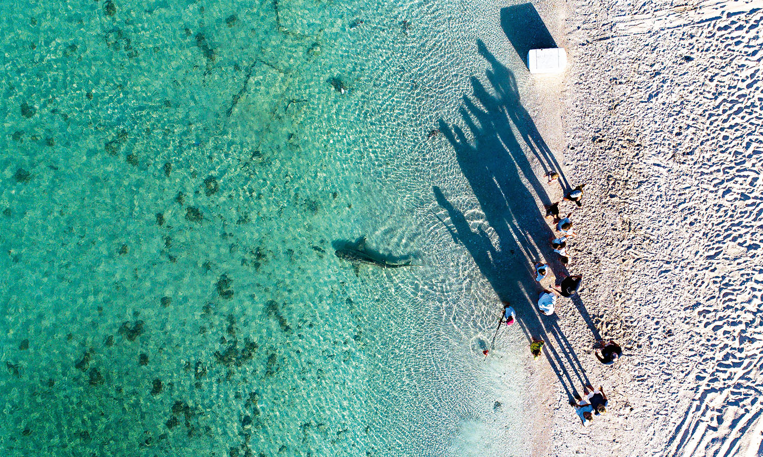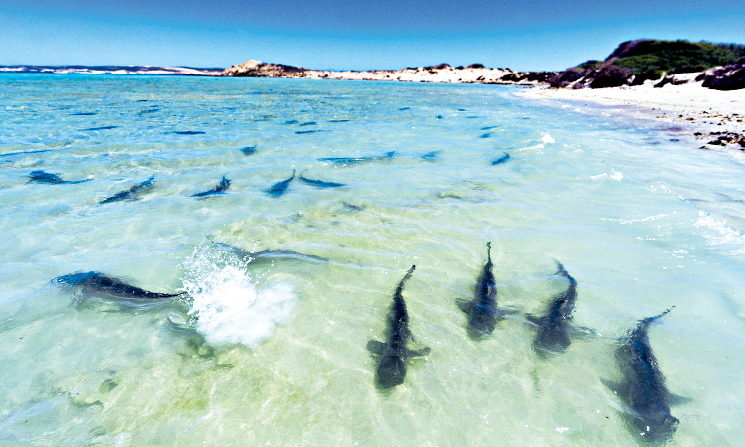 Following Kieran’s directions on a map, I push the Nissan over a ridge before parking it and clambering over some rocks feeling like a young Charles Darwin. Walking down to the water’s edge, I watch as dozens of small nervous sharks gather in the shallows of Surf Point, their fins cutting the surface as they whip one another into a feeding frenzy. If they were a few metres longer it would be truly terrifying.