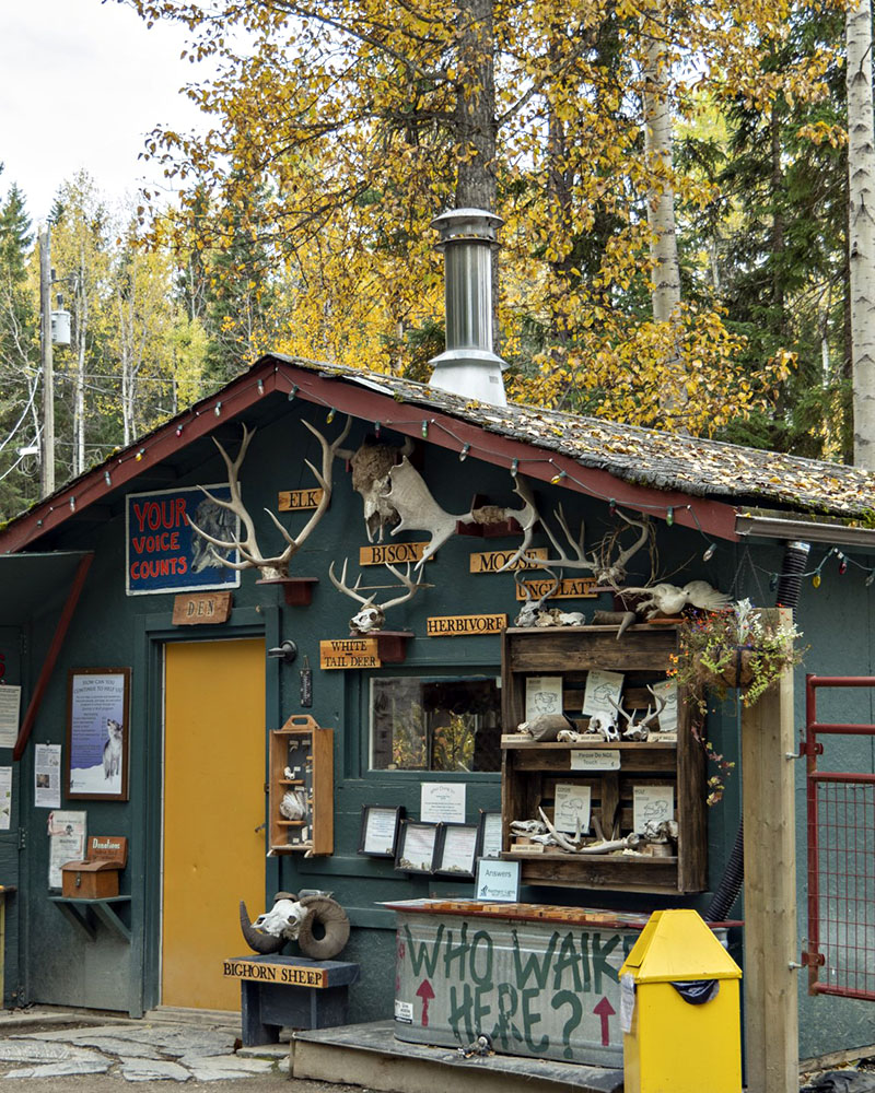 The entrance to the small green shed that is home to the Northern Lights Wolf Centre is covered in the skulls and antlers of Canadian Rockies natives. And a door the same colour as the nearby mountain town of Golden is our gateway to an experience for which I’m not fully prepared.