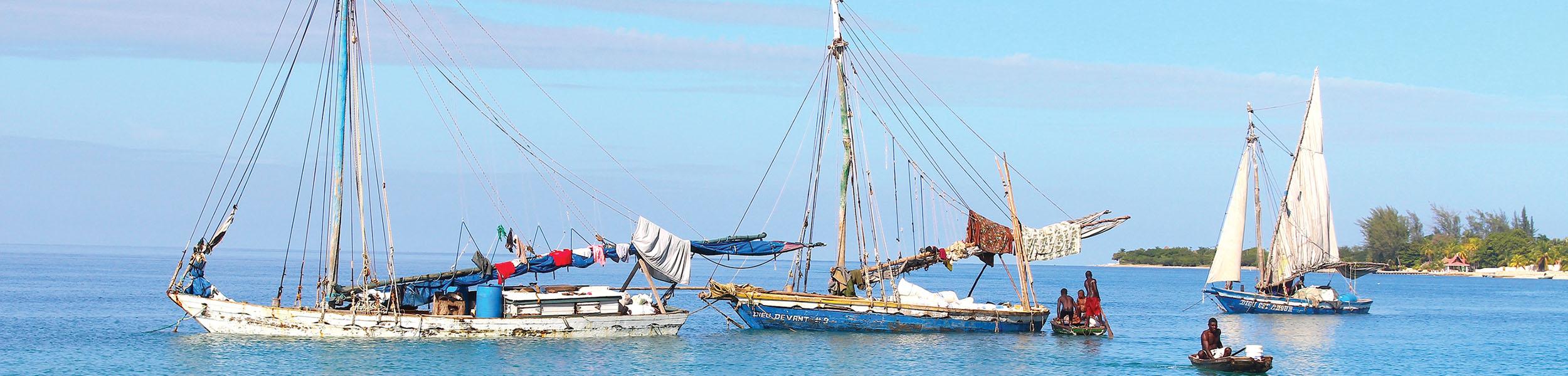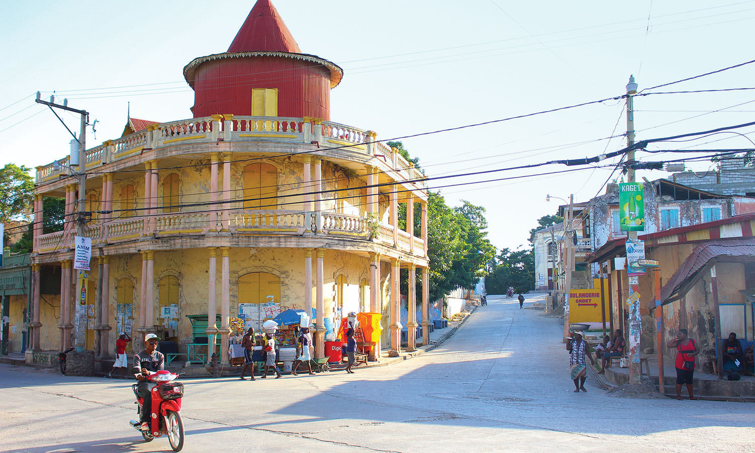 I finish my time here with an early morning hike to the village of Kay Piat, halfway up the mountains that rise above the ocean. Paths are busy with villagers carrying loads of breadfruit down to the market. A hillside house has a cross outside, a vodou sign of protection. “In Haiti, when people come into an area and see the signs, they understand what it means,” says Jean-Roger.