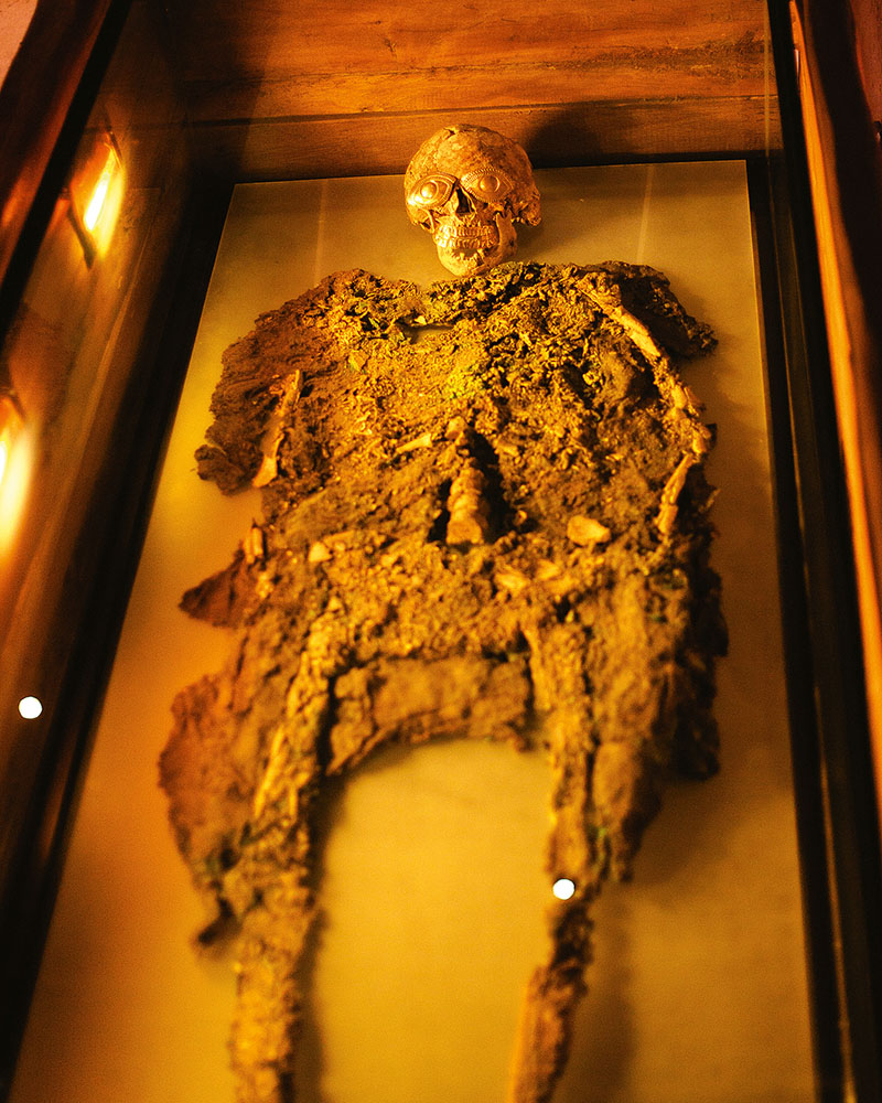 In 2005 the body of a wealthy Peruvian woman was found buried deep in the desert dust outside Trujillo in northern Peru. She was heavily tattooed (smiley faces, hearts, snakes), her nose pierced, her hair long and braided. Next to her body was a cache of weaponry and elaborate jewellery. The discovery sparked a great deal of interest, not only in Peru but around the world. Her body remains on display today, a short walk from its original resting place, where, for a modest fee, you may view its sombrely lit reflection and ponder its significance and your own place in the grand scheme of things. It’s 1700 years old.