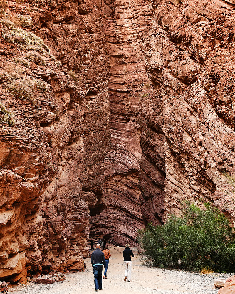 We take the Route 68 south from Salta toward Valles Calchaqui and the northwest wine growing capital of Cafayate. The landscape is a windswept canvas of rugged ochre-coloured mountains and wide flats of low scrub, towering cacti and dry, rockstrewn riverbeds. We taste ruby red Malbec and delightfully dry torrontes wines before visiting the Devil’s Throat, a cylindrical incision in the red valley walls where a pan piper fills the air with haunting notes that seem to hover inside the rock formation. But still, despite the Wild West landscape, there’s not a gaucho in sight.