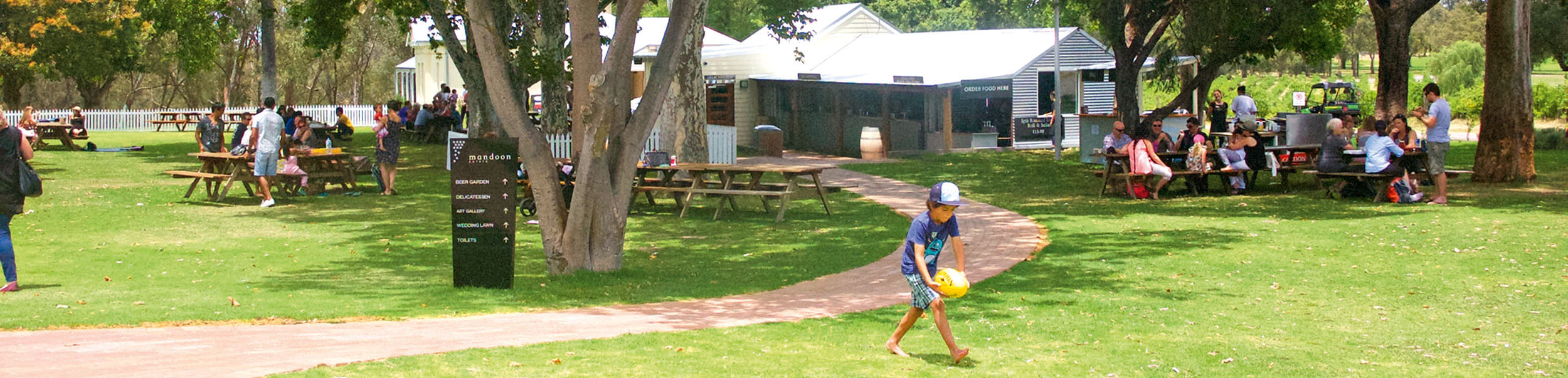 Superlatives abound at my first stop, Mandoon Estate’s Homestead Brewery. Mandoon is the darling of Swan Valley, with contemporary wood and corrugated-iron buildings, an awesome deck and beer garden with manicured lawns and vineyard views.