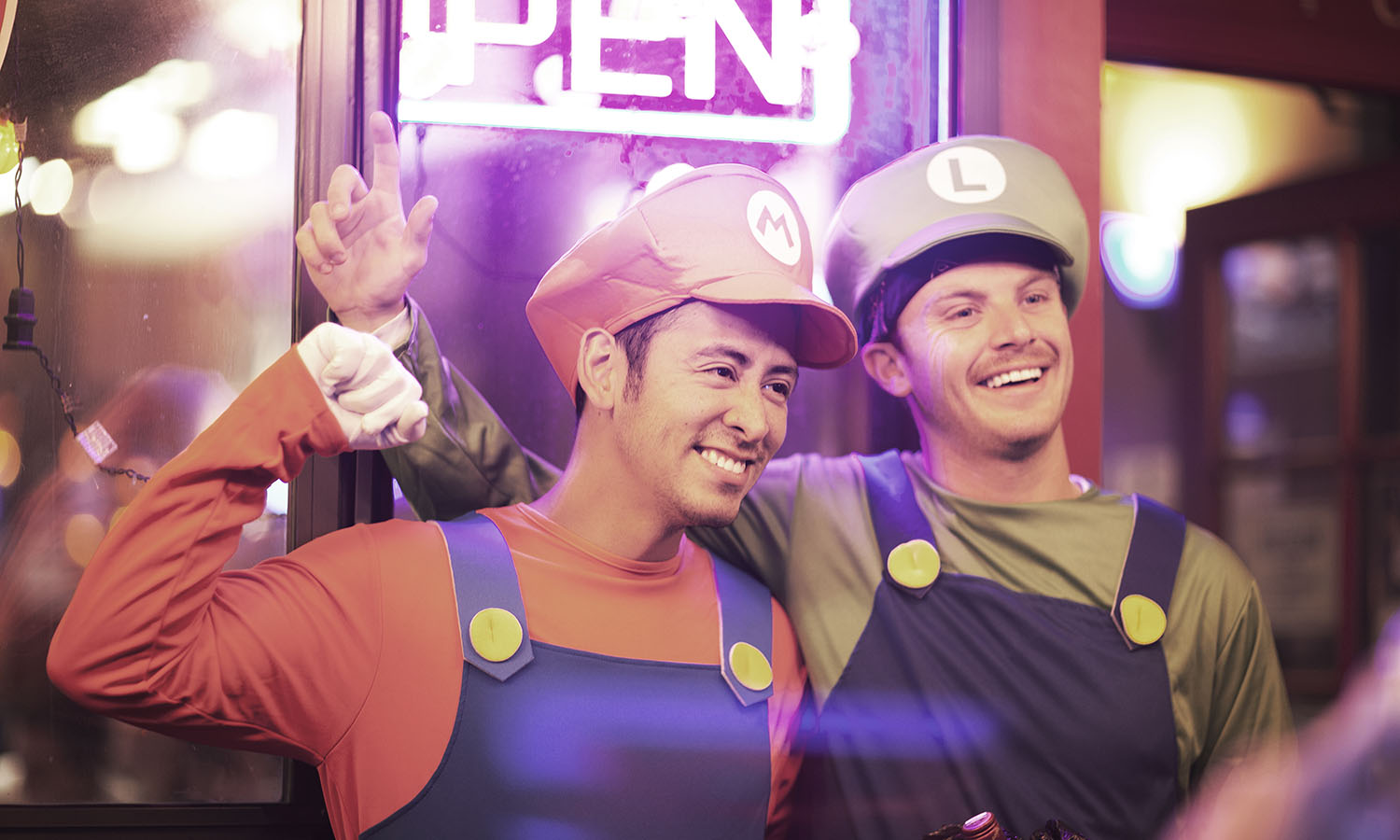 Soon we are consumed in the growing procession of more drag queens, sailors, priests, nuns, the Super Mario Bros and Carol from Where the Wild Things Are. The sidewalks reach maximum capacity and queues begin snaking from the many notorious bars and restaurants lining Castro Street. Things inside and out are heating up.