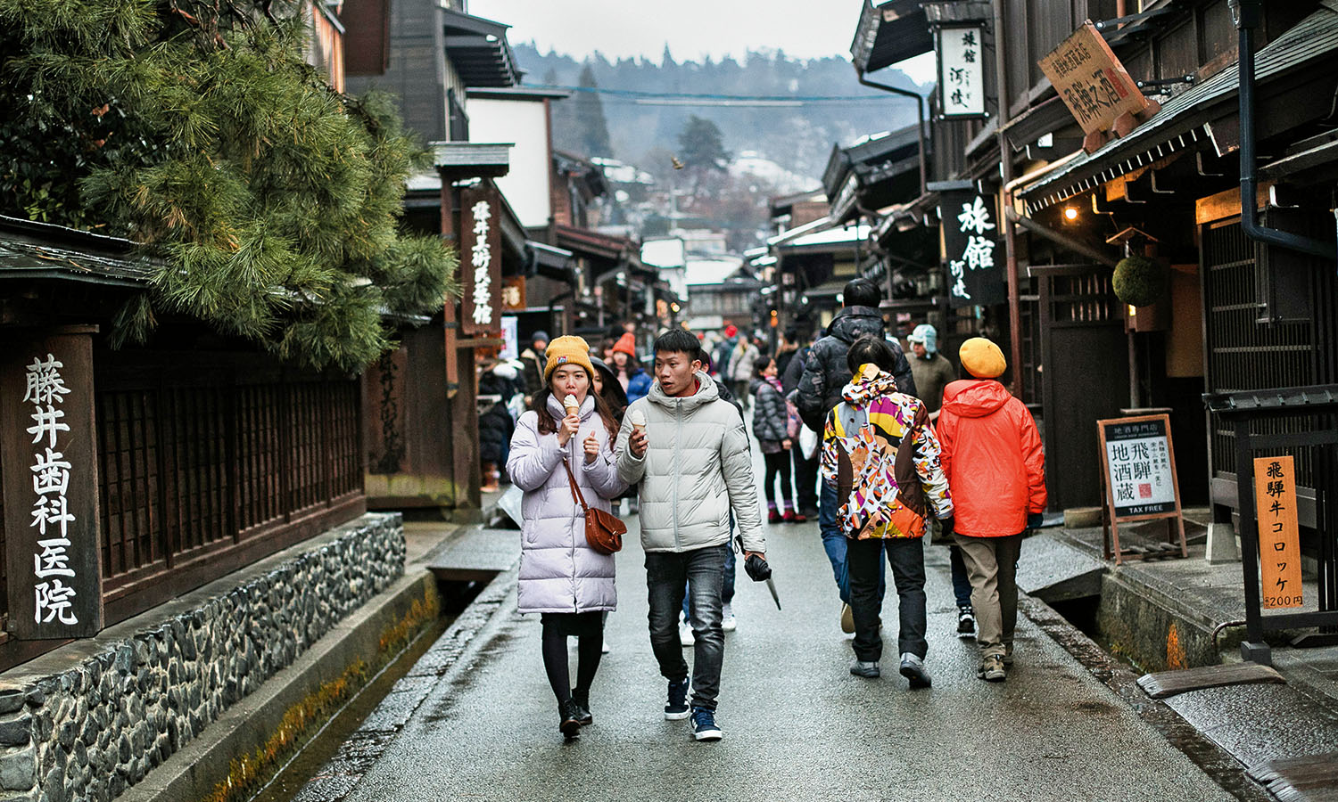 It’s snowing when I arrive in Takayama, a bustling merchant town in Gifu Prefecture known as Little Kyoto, and I don a puffer jacket and take to its historic streets. The township narrowly avoided destruction during World War II only to be razed by fire shortly afterwards. Local tradesmen rebuilt much of the town in the old style and its main trading street is stuffed with beautiful artisan stores, small restaurants and sake distilleries. Takayama is famous for its Hida beef, a richly marbled type of wagyu, sourced locally from specialised cattle. I try it grilled rare and it’s so tender and juicy – and almost sweet – it makes my mouth water. Afterwards I tour a sake brewery and get a glow on. There’s something to be said for sipping rice wine while snowflakes swirl and jive to a Coltrane solo outside a frosted window.