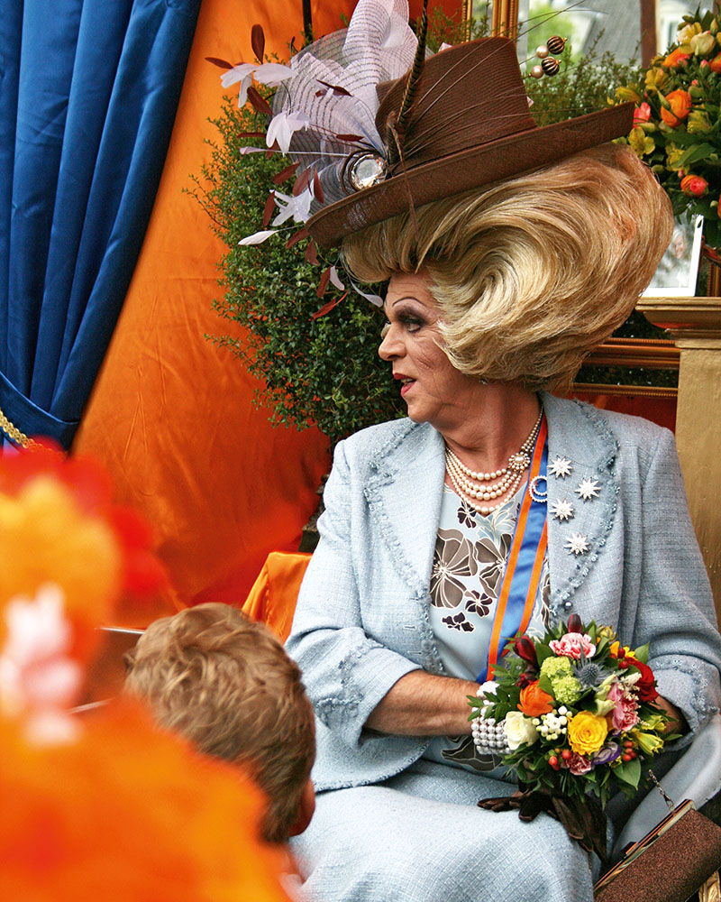 “Do you know what is going on?” a baffled Japanese tourist asks me on the train to Amsterdam, via the airport. Judging by his suitcase he’s just arrived and apparently hasn’t got a clue what he’s stumbled upon. The train is jam-packed with people dressed in ridiculous orange outfits, the Dutch national colour. Orange wigs, big plastic crowns and flags complete the madness. So either the Dutch national soccer team has won the European final, which grips the country with similar revelry, or something else is going on. Yes, something else is most definitely going on. It’s Queen’s Day – the day the Dutch celebrate the birthday of Queen Beatrix. Well, actually her late mother’s birthday, as Queen Beatrix’s birthday is in January and temperatures below zero would seriously spoil the outdoor fun.