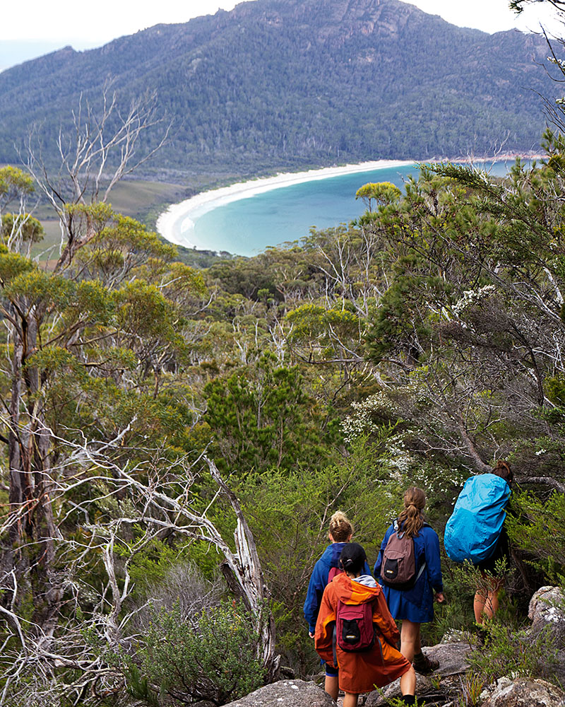 Our final journey on day three is the longest, most difficult and easily the most rewarding. It is a seven-hour hike through Freycinet National Park up to the 579-metre summit of Mount Graham for an almost bird’s-eye view of Freycinet’s number-one attraction, Wineglass Bay. It is easy to see why this beach consistently ranks among the top 10 in the world. “I know,” I say to Kia, our guide on this hike, as we gaze down across the bay then back to Schouten Island behind us. “It’s perfect.” We lose sight of Wineglass Bay as we descend Mount Graham along Quartzite Ridge, stopping to sit on one of the huge rocks and stare out at the clear waters of the Tasman Sea.