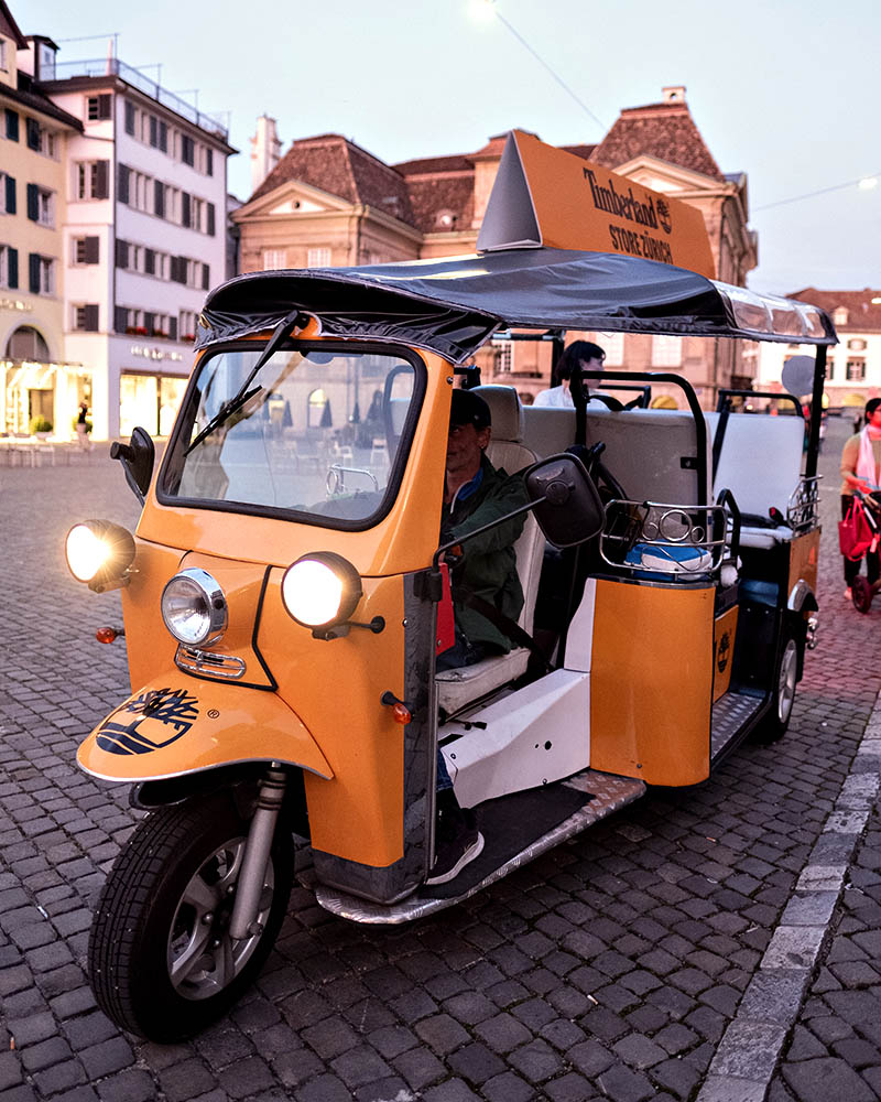 It’s my first night in Switzerland and I’m seeing Zurich’s historic Altstadt (Old Town) in a rather unconventional manner—from the back seat of an electric tuk tuk that’s serving up fondue by the caquelon (pot).