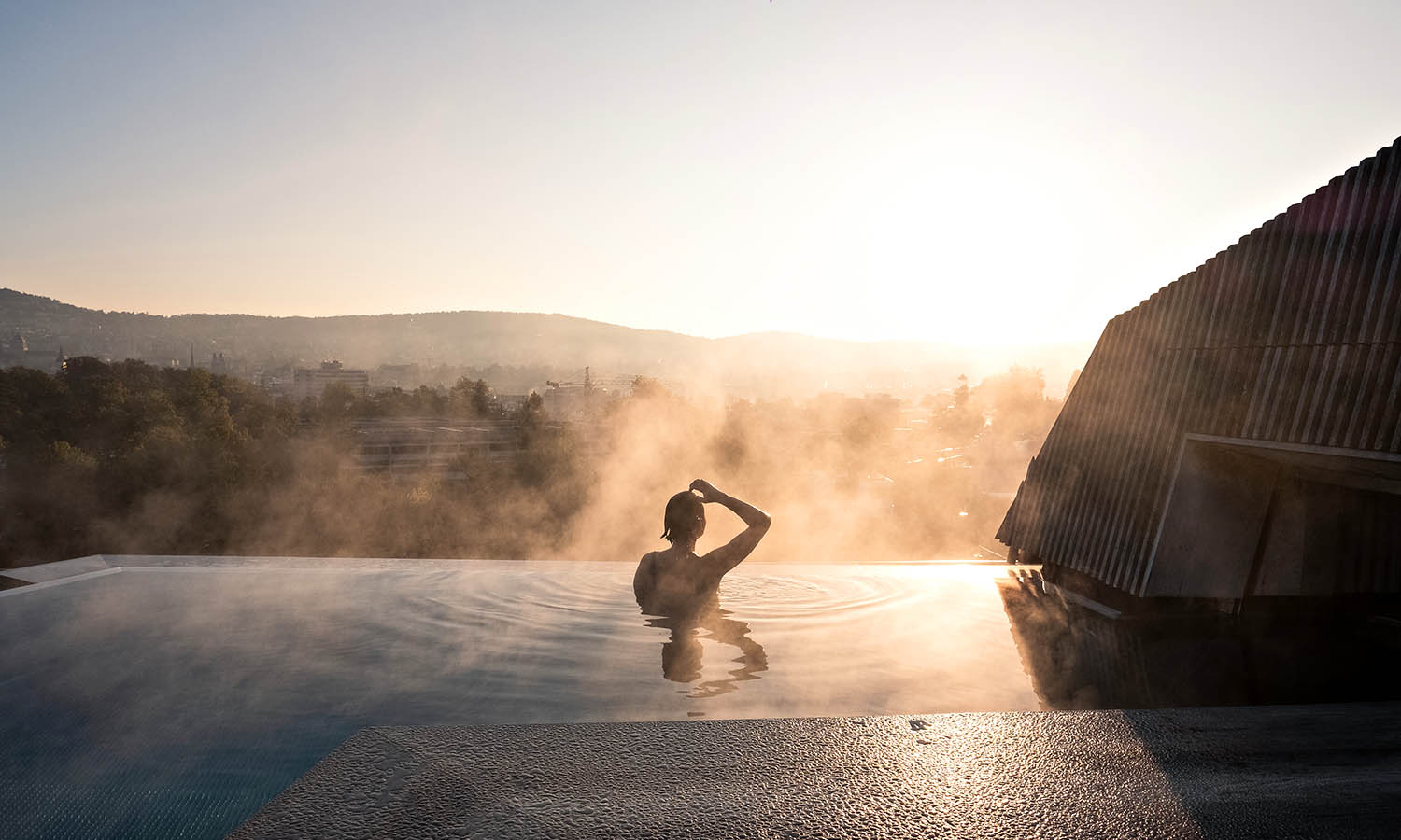 I’m soaking in a bath in a century-old vault that used to be a brewery. Earlier this morning I watched the sunrise above the Zurich cityscape from a thermal rooftop pool. In a few moments I’m going to move into the floral steam room to detox the floral gin highballs I downed last night.