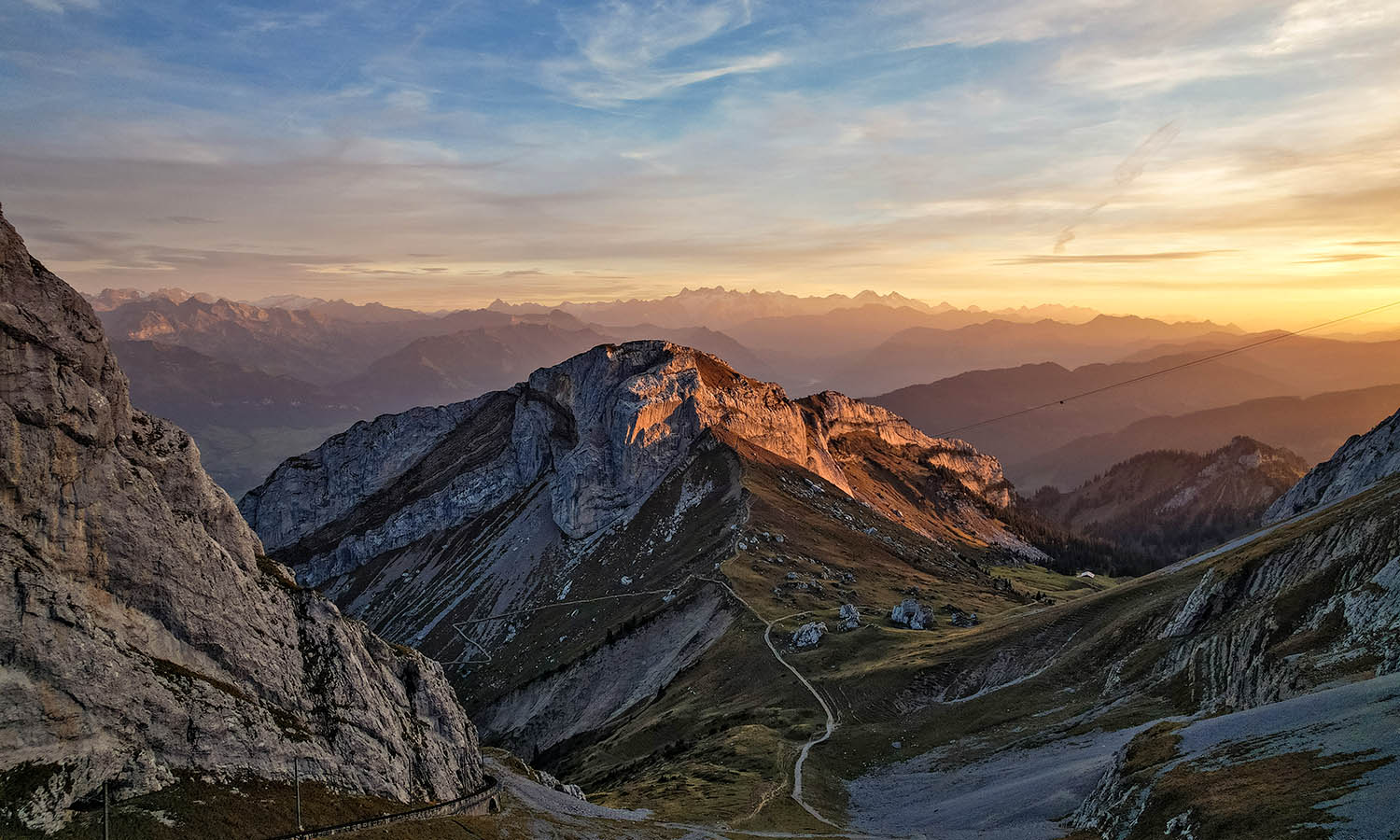 Mount Pilatus stands 2,132 metres above sea level and proudly overlooks central Lucerne. In the Middle Ages, people believed dragons with super healing powers lived in the mountain’s craggy crevices. I see no evidence of dragons, but I do watch a sunrise so beautiful it has me believing in magic.