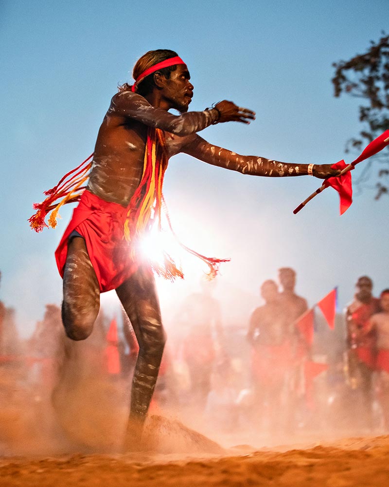 At night, the music starts. The crowd lets loose as Coloured Stone play their 1984 hit ‘Black Boy’; they go wild for Yilila band’s mix of traditional Red Flag songs and high energy reggae and rock; songman and ceremony leader, Ngulmiya Nundhirribala, sends the audience into a trance with his god-like voice. Ngulmiya sings versions of formerly private ceremony songs—they’re all in native language and it’s impossible not to be moved.