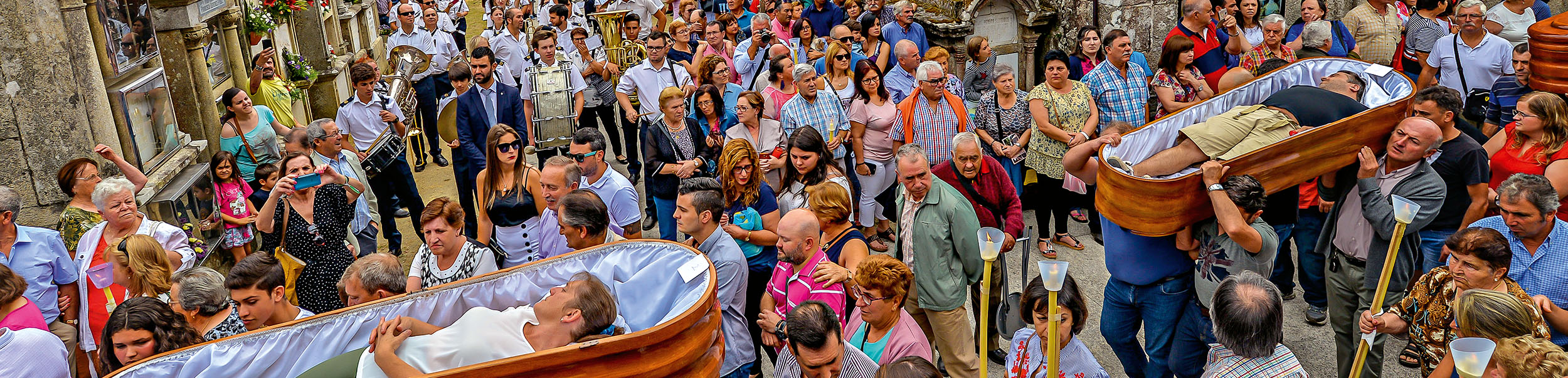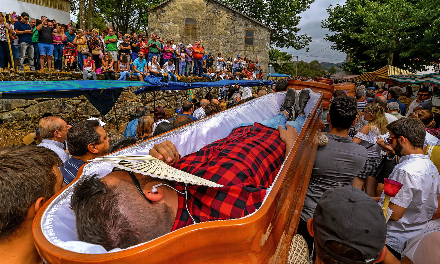 I’m standing among a few thousand spectators to witness one of the more peculiar ceremonies, in a country that has made a name for its oddball rituals. On 29 July each year people gather for the Fiesta de Santa Marta de Ribarteme in a tiny Galician village, surrounded by gentle rolling hills near As Neves. The living, breathing occupants of these seven stout wooden coffins are here to give thanks to Santa Marta for sparing their lives. “A victory of life over death,” local priest Alfonso Besada Paraje explained to me the day before.