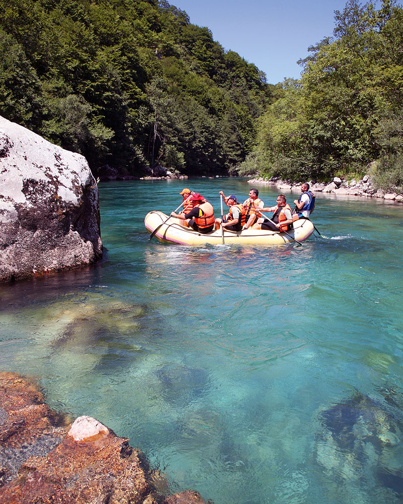 There definitely aren’t any cocktails on offer during our next aquatic challenge, when we navigate the foreign policy of border patrols during a whitewater rafting mission down the Tara River. High in the Durmitor Mountains of northern Montenegro, the waterway traverses the country’s border with Bosnia and Herzegovina, raging across a tangled knot of invisible political lines.