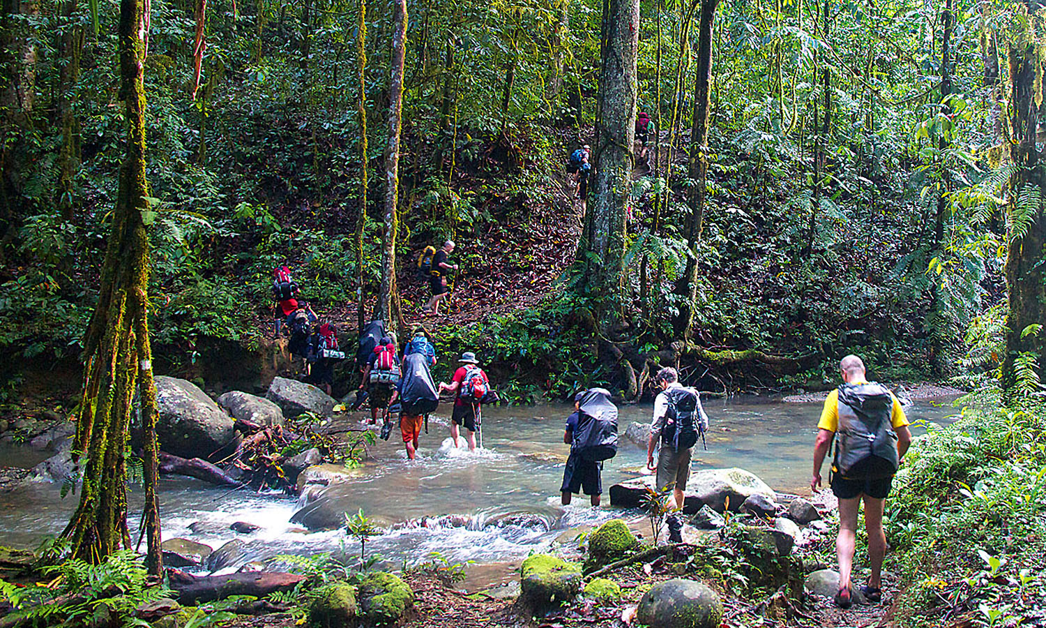 That evening, after the walking is over, dinner is done and Henry has filled your water bottles from the creek, you clamber into your tent and recall the day just gone. If asked, you’d describe the trekking conditions as similar to putting a step machine in a sauna, cranking it up to the highest setting and going at it for nine hours. For total authenticity, add mud, rain, bugs and a fair chance of gastro and malaria.