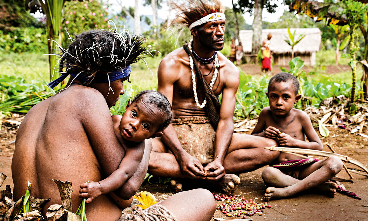 I’m introduced to village chief Bomal and his three wives. He sits proudly on a log, munching on a piece of fruit and surrounded by his concubines. Polygamy is still widely practised in the highlands, as too are ‘bride prices’, with pigs used as the most common form of currency.