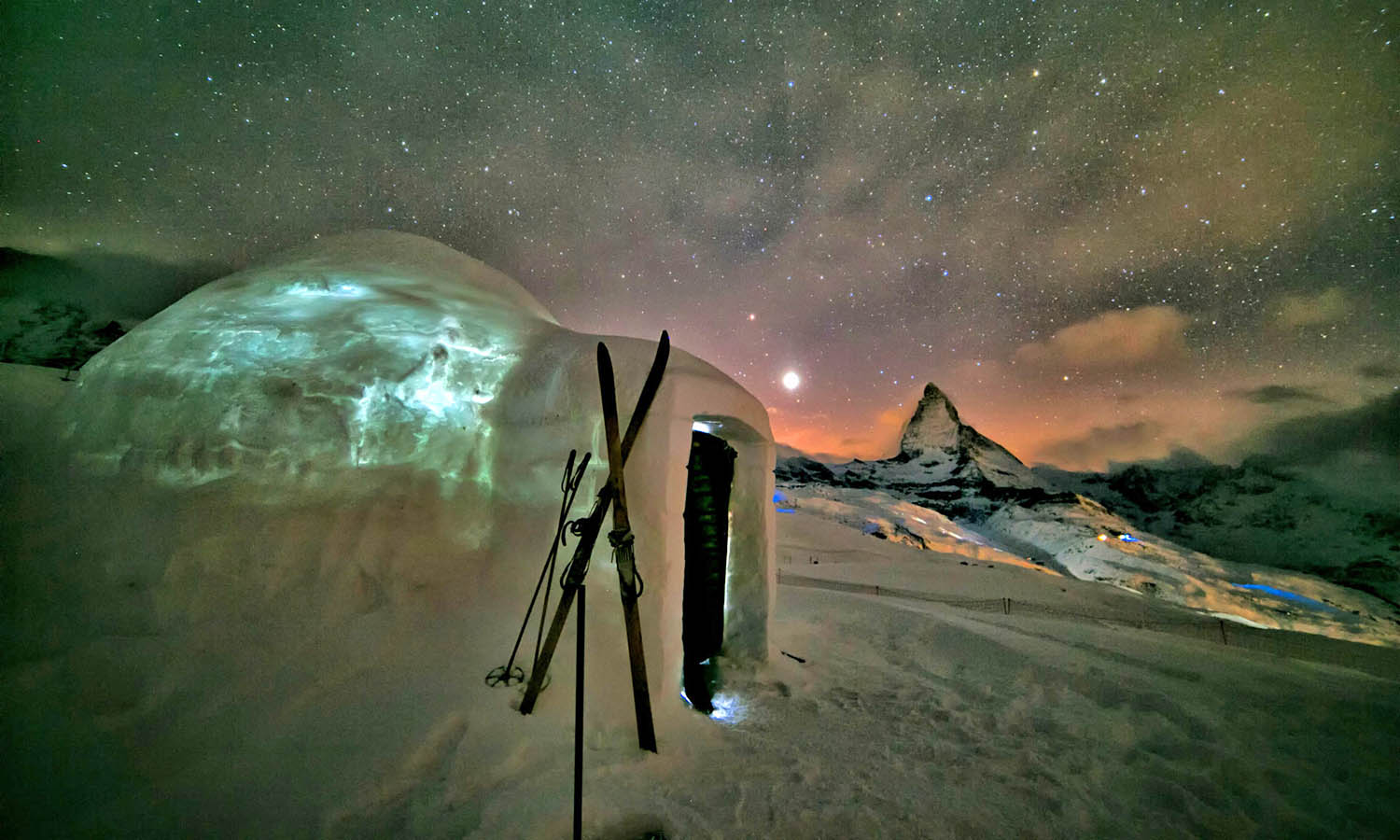 Know anyone who has warmed up after a bit of snowshoeing under the starry alpine sky by drinking mulled wine, or glühwein, in a bar made of ice, then slept in an igloo and enjoyed a sauna before breakfast? No? Well, you can be that person.