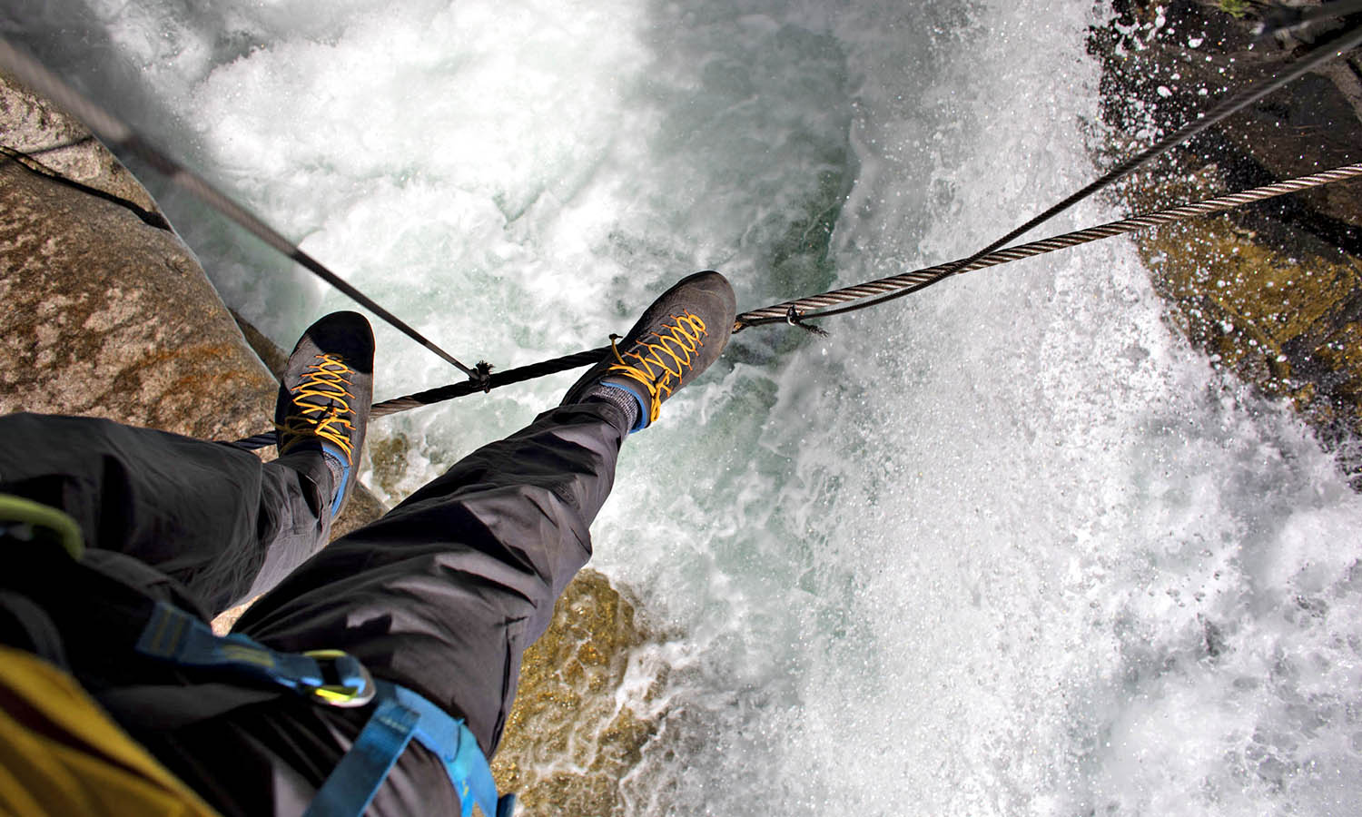Via ferrata gives you the freedom to climb to dizzying heights, traverse ladders and bridges with the backup of a harness clipped to a safety wire. Think of it as an exhilarating cross between hiking and climbing. Routes are rated from easy A to extreme E.