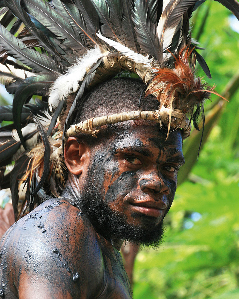 All around me, villagers stomp, sway and chant to the beat of the tam-tam (slit drum) in a hypnotising riot of colour, movement and sound. Palm leaves secured into penis sheaths jiggle up and down in tempo with bouncing bare breasts, naked toddlers clutch at pandanus ribbons fraying from their mothers’ skirts, and ghoulish clay faces leer out underneath plumes of rooster feathers.