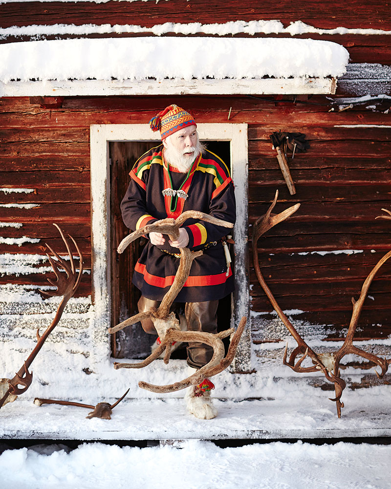 On the last day of my stay I meet Lars, a Sami man, and his reindeer herd in the town of Flakaberg. Sami people have relied on reindeer for thousands of years, owing their Arctic survival to the clothing, transport, meat and tools provided by the animals.
