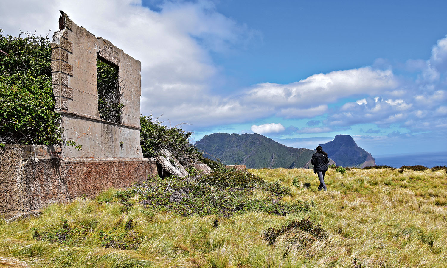 I choose the six-hour walk for my last day in the Juan Fernandez. Halfway up the rugged volcanic range that separates San Juan Bautista from the far side of the island, I come across a trail leading to the remains of what Japanese explorer Daisuke Takahashi claims is Selkirk’s main hut. The pile of rocks isn’t much to look at now, but excavations sponsored by the National Geographic Society a decade ago revealed a few tangible links to the Scottish privateer, including a blue tip from a copper navigational device commonly used by sailors of Selkirk’s time.