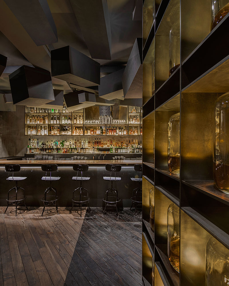 Step down a hallway of black-painted bricks into a lounge area accented by leather upholstery, copper fixtures, dark wooden floorboards and bare concrete walls. Out-there art, light sculptures and fish-eye mirrors complete Flask’s rarefied air. Recline on a vintage sofa or take a seat at the bar, where some of the city’s top mixologists will shake up something just as special as your surroundings.