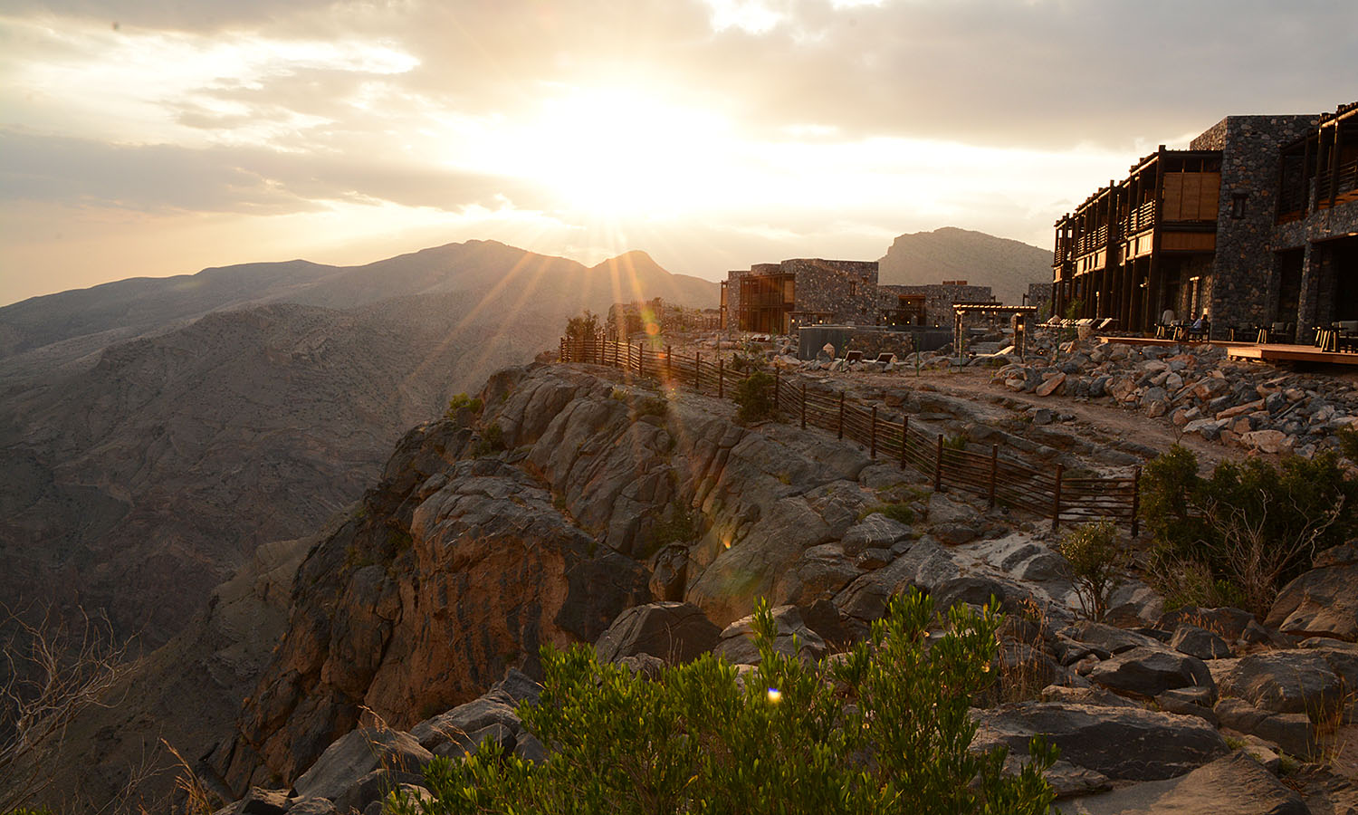 Constructed using stone hand-cut from surrounding mountains, Alila Jabal Akhdar blends sophisticated comfort with rugged terrain and Omani tradition. Perched over a gorge at 2000 metres above sea level, this new and sumptuous addition to Oman’s landscape offers sweet relief from the heat of the capital, a two-hour drive away. The aroma of frankincense drifts through the cool air, and afternoon cocktails are swilled on a deck overlooking an infinity pool. Day tours take guests into the heart of the Hajar Mountains to explore lush valleys of pomegranate, walnut and apricot trees, discover mud-brick houses crumbling into the hills, and wander terraced gardens scented with sweet pink roses.
